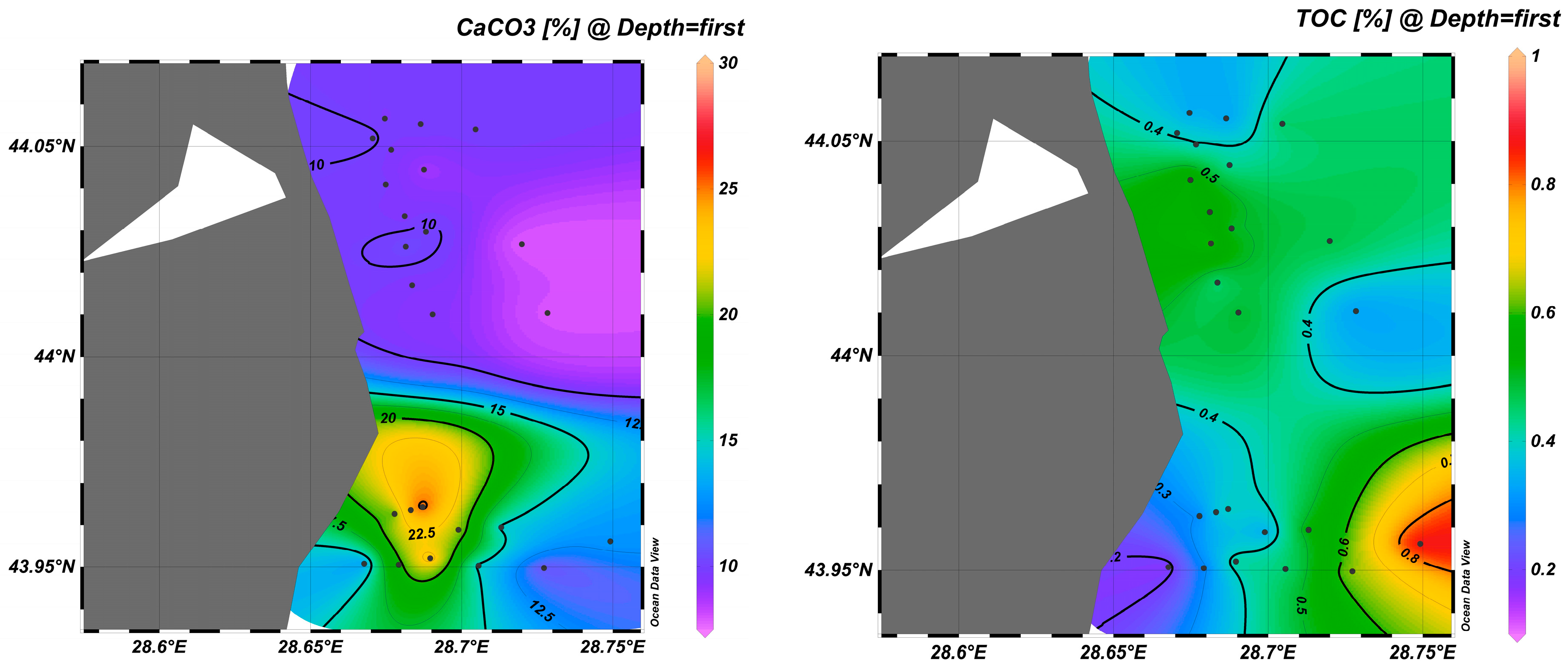 3.2.1. Carbonates and Total Organic Carbon (TOC)