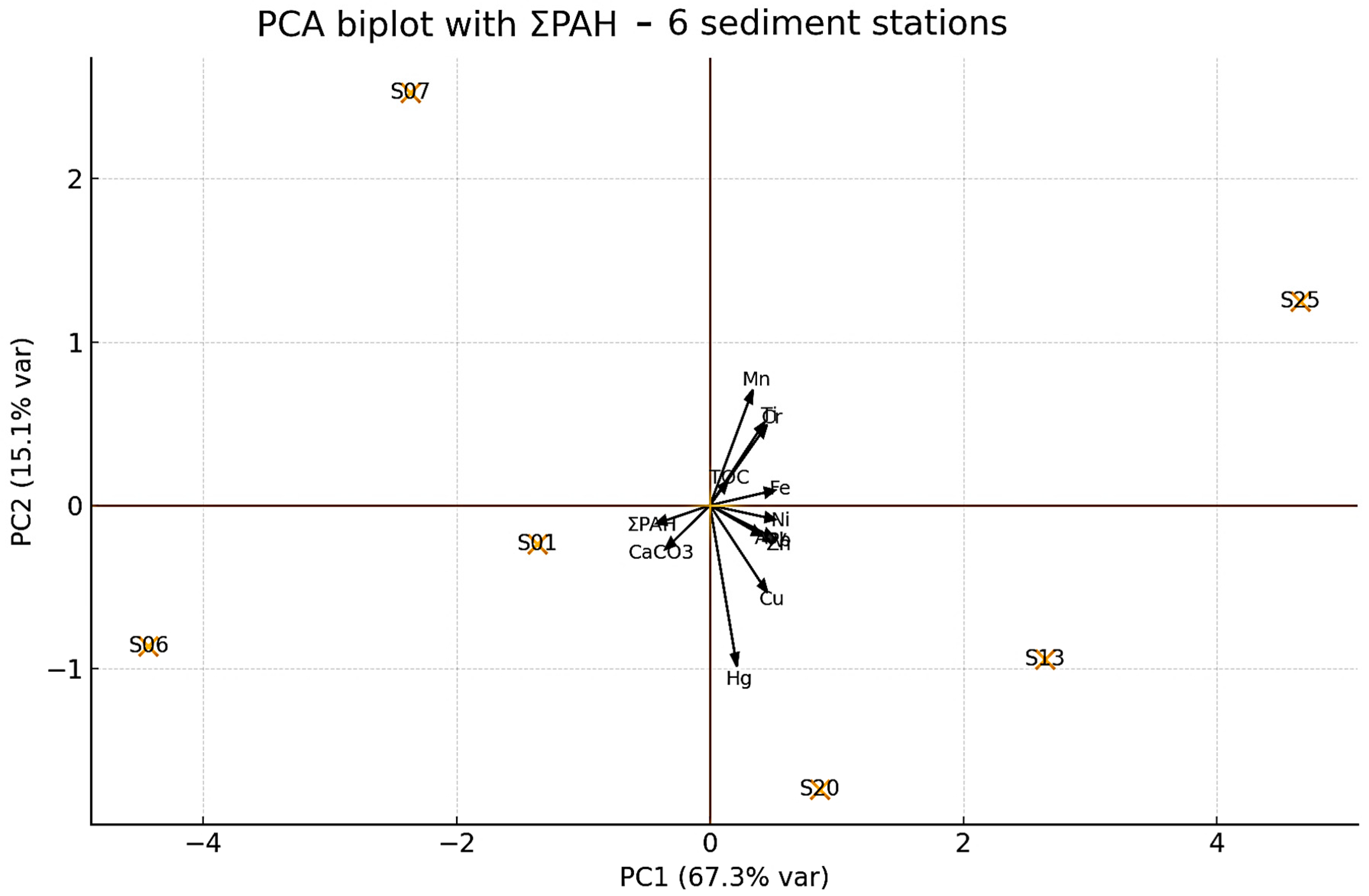 | SigmaPAH_µg/kg | −0.266 | −0.071 | 0.126 | −0.694 | 0.519 | −0.040 |