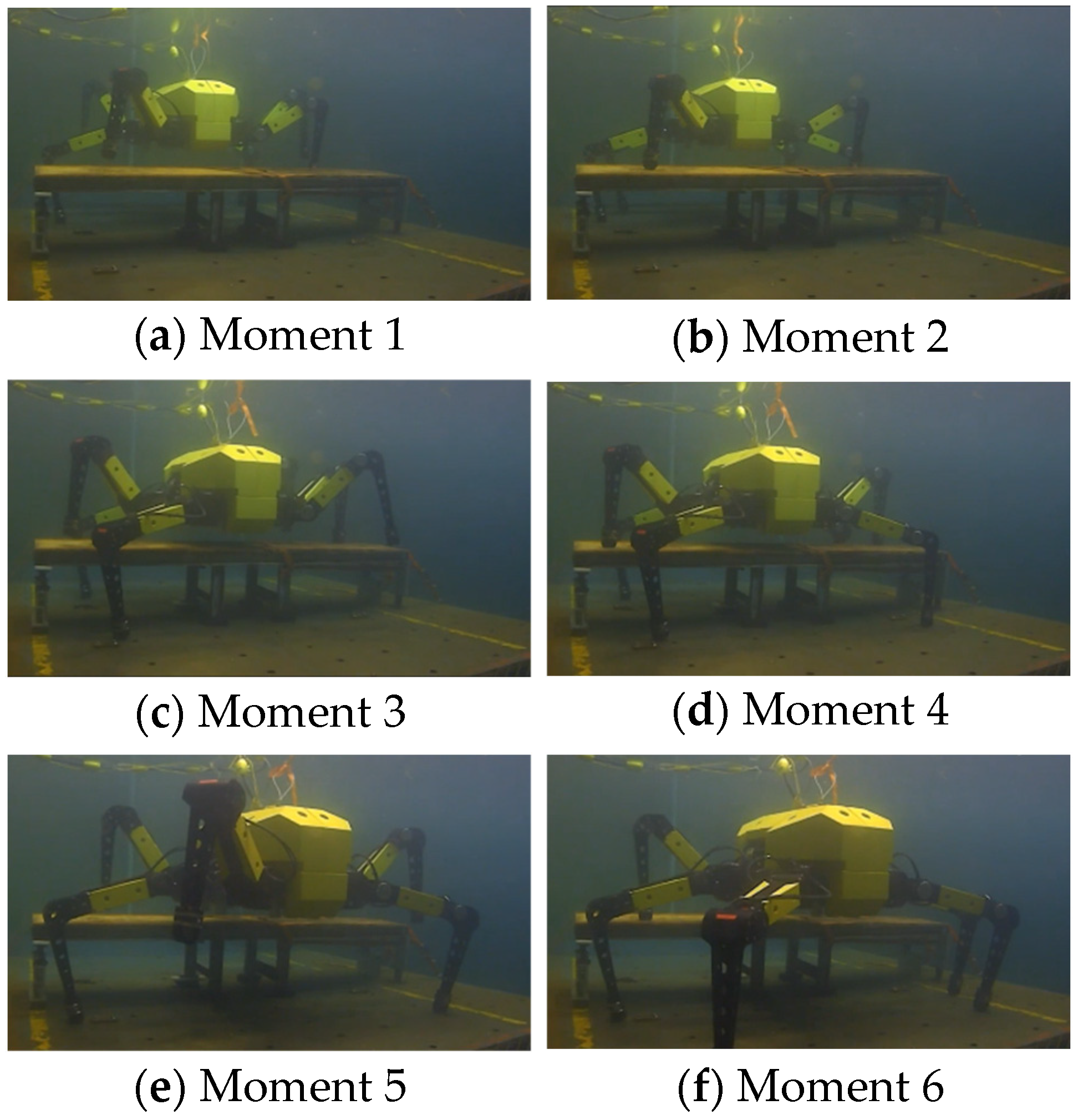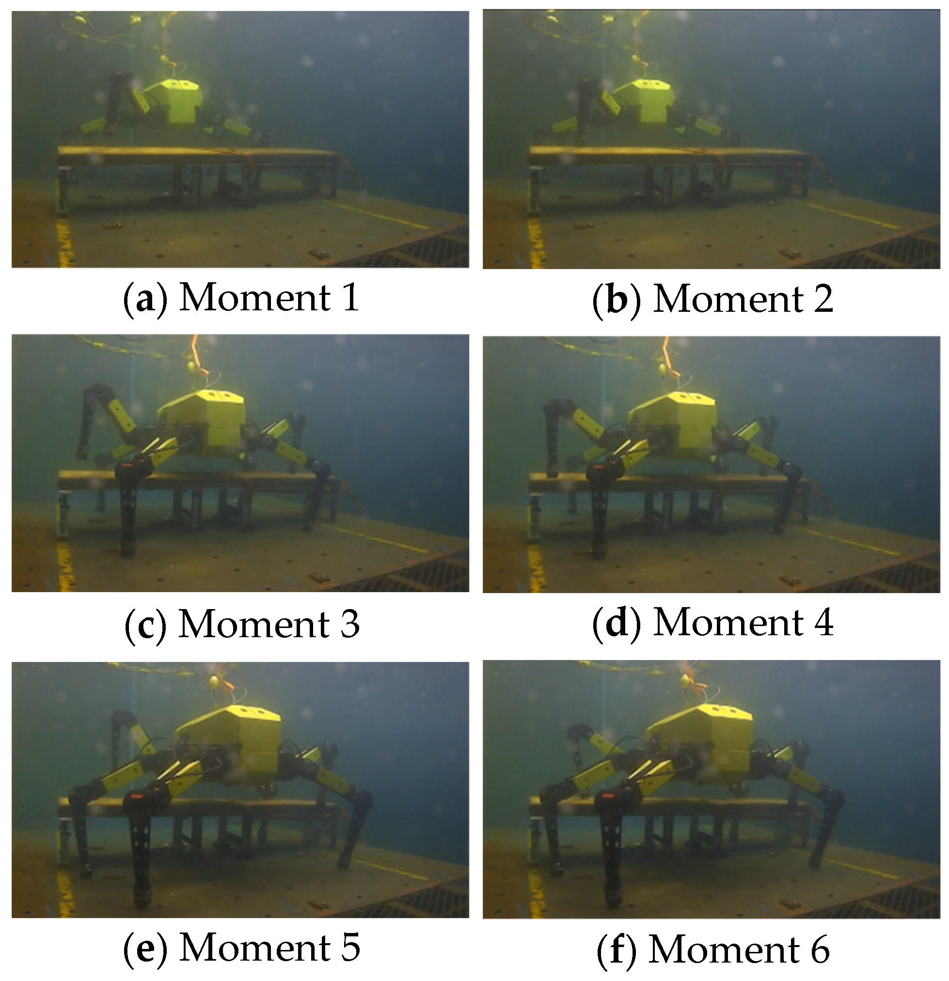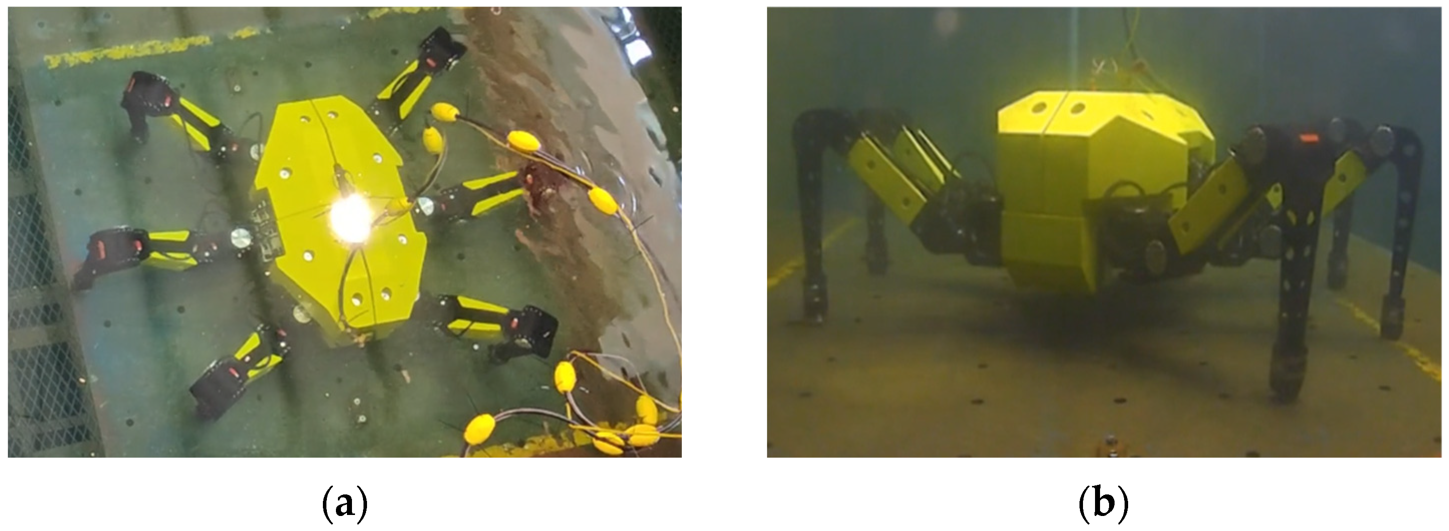 - Ma, F.; Yan, W.; Chen, L.; Cui, R. CPG-based motion planning of hybrid underwater hexapod robot for wall climbing and transition. IEEE Robot. Autom. Lett. 2022, 7, 12299–12306. [Google Scholar] [CrossRef]