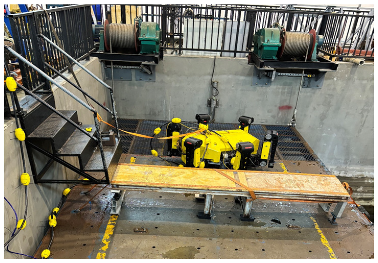 - Zhang, D.; Zhao, B.; Zhang, Y.; Zhou, N. Numerical simulation of hydrodynamics of ocean-observation-used remotely operated vehicle. Front. Mar. Sci. 2024, 11, 1357144. [Google Scholar] [CrossRef]