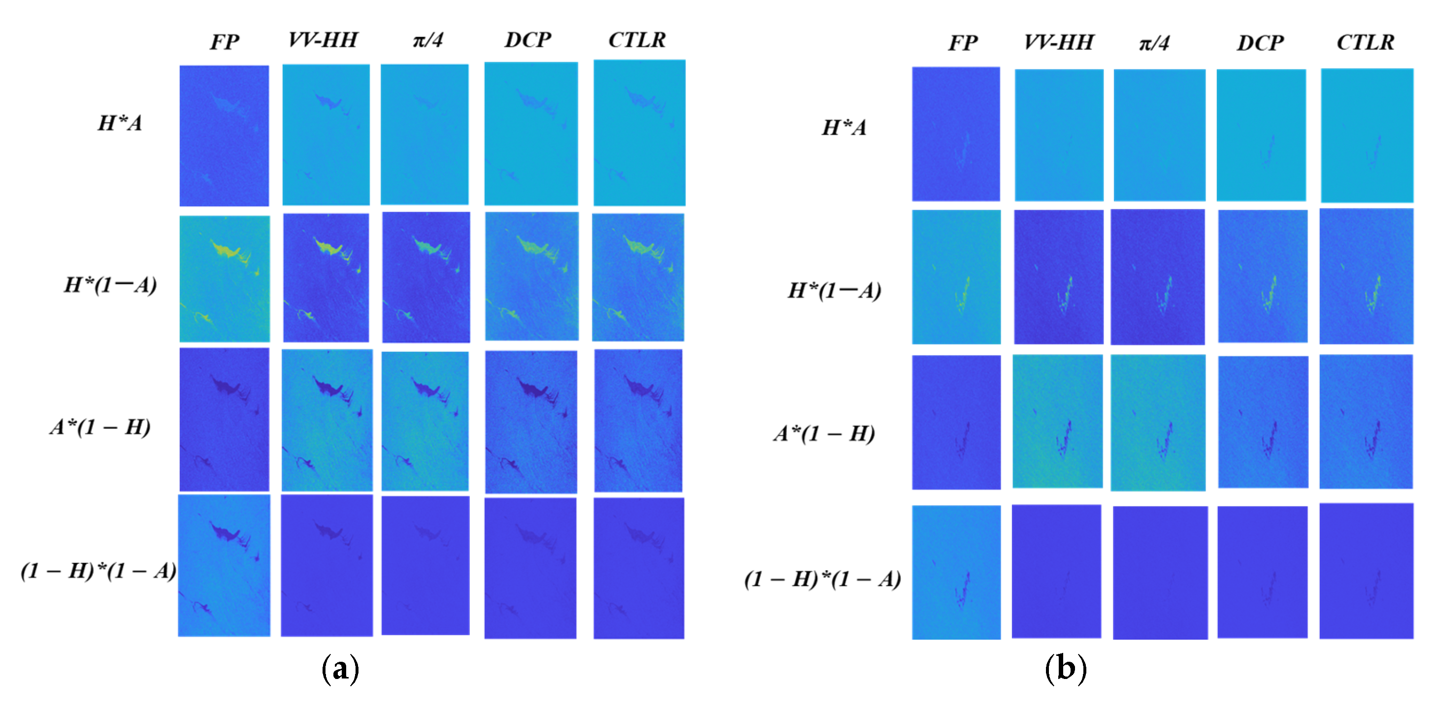 3.3. Extraction of Typical Polarimetric Features for Multi-Polarization Modes