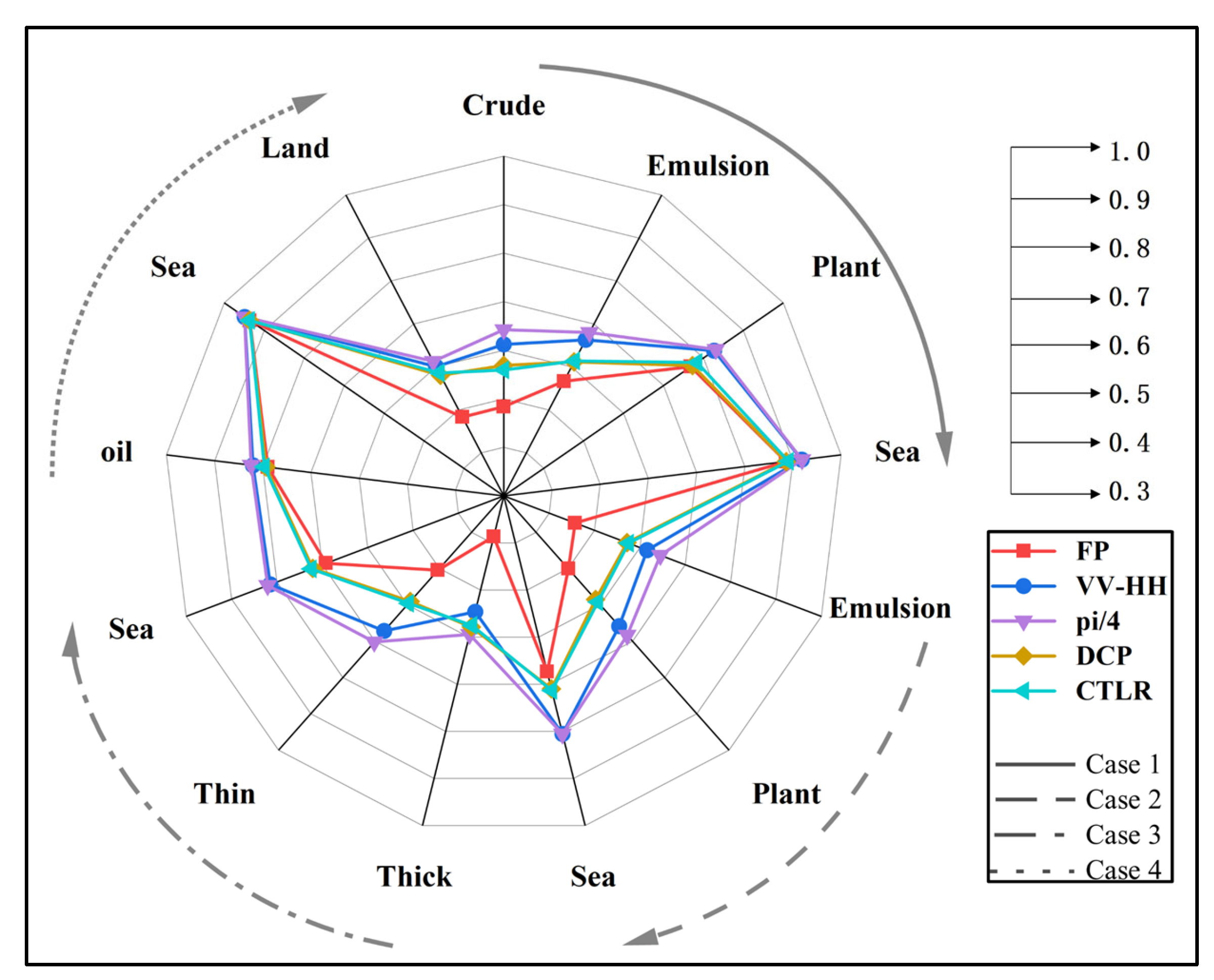 | Scene 2 | Radarsat-2: Oil Type Differences | Emulsion | 0.0106 | 0.0409 | 0.0341 | 0.0306 |