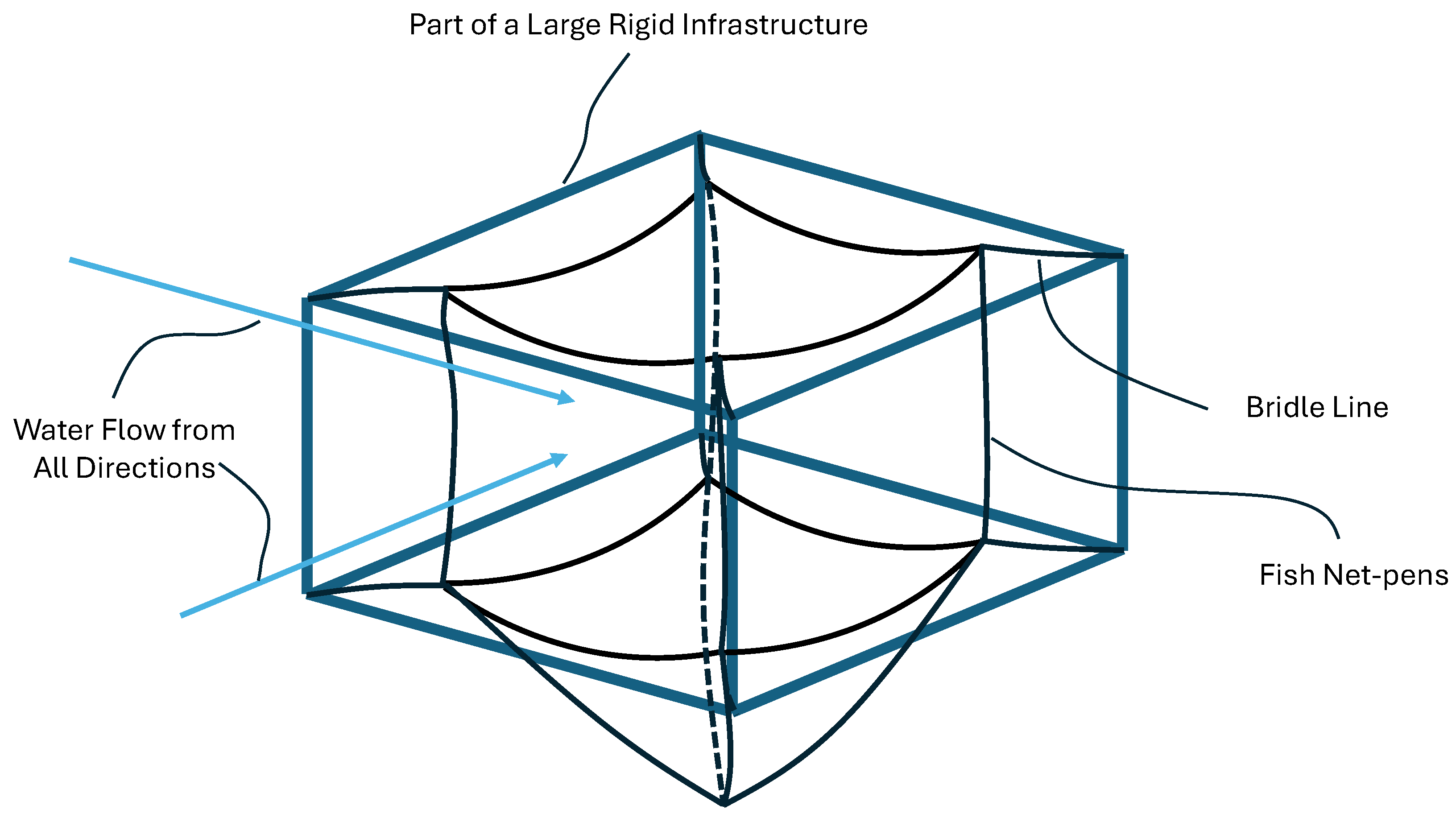 29]. A simplified illustration of fish net-pen setup inside the rigid cage design is shown in