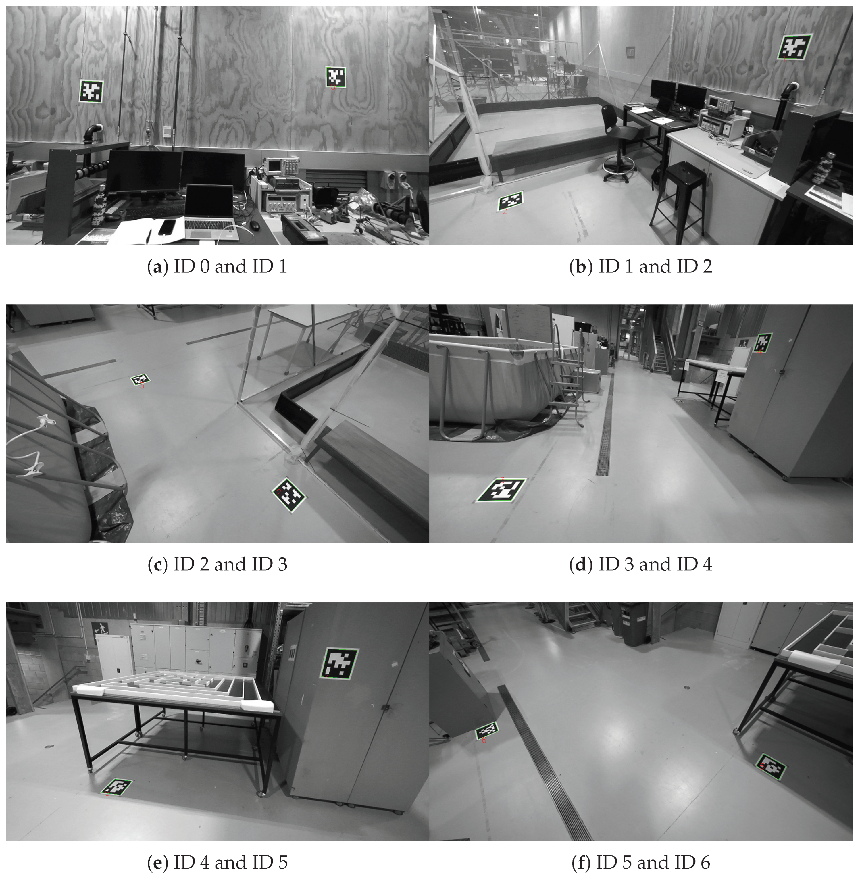 Regardless of the aforementioned scenarios, the proposed algorithm for AprilTag extraction and data-logging allows for the ease of installing AprilTags without the need for manual measurements of each AprilTag’s relative pose. This factor substantially reduces the installation time. The only requirement for AprilTags installation is to place a pair of AprilTags within the field of view of the UUV’s camera at each instant of time, and so is the same for other subsequent pairs, as shown in
