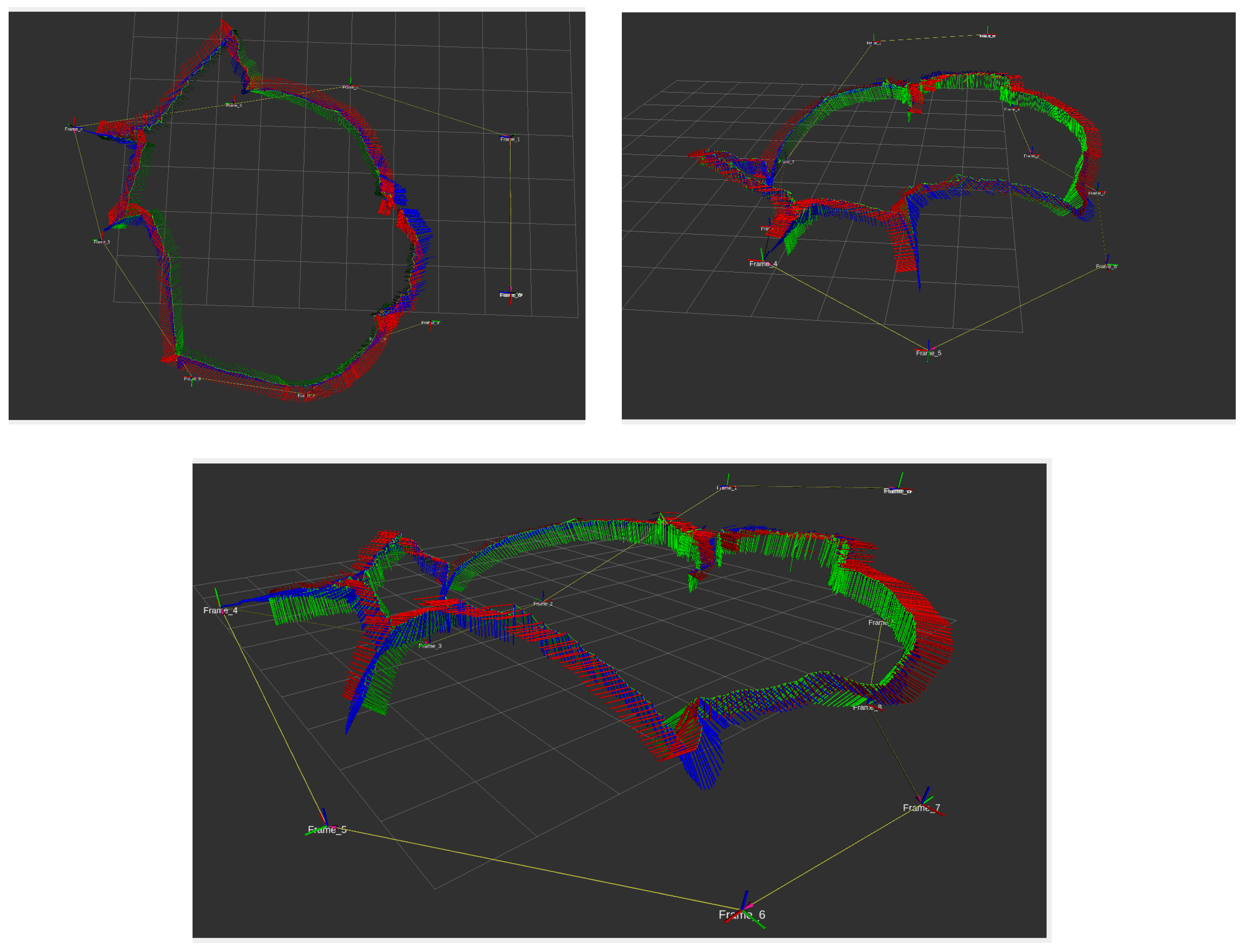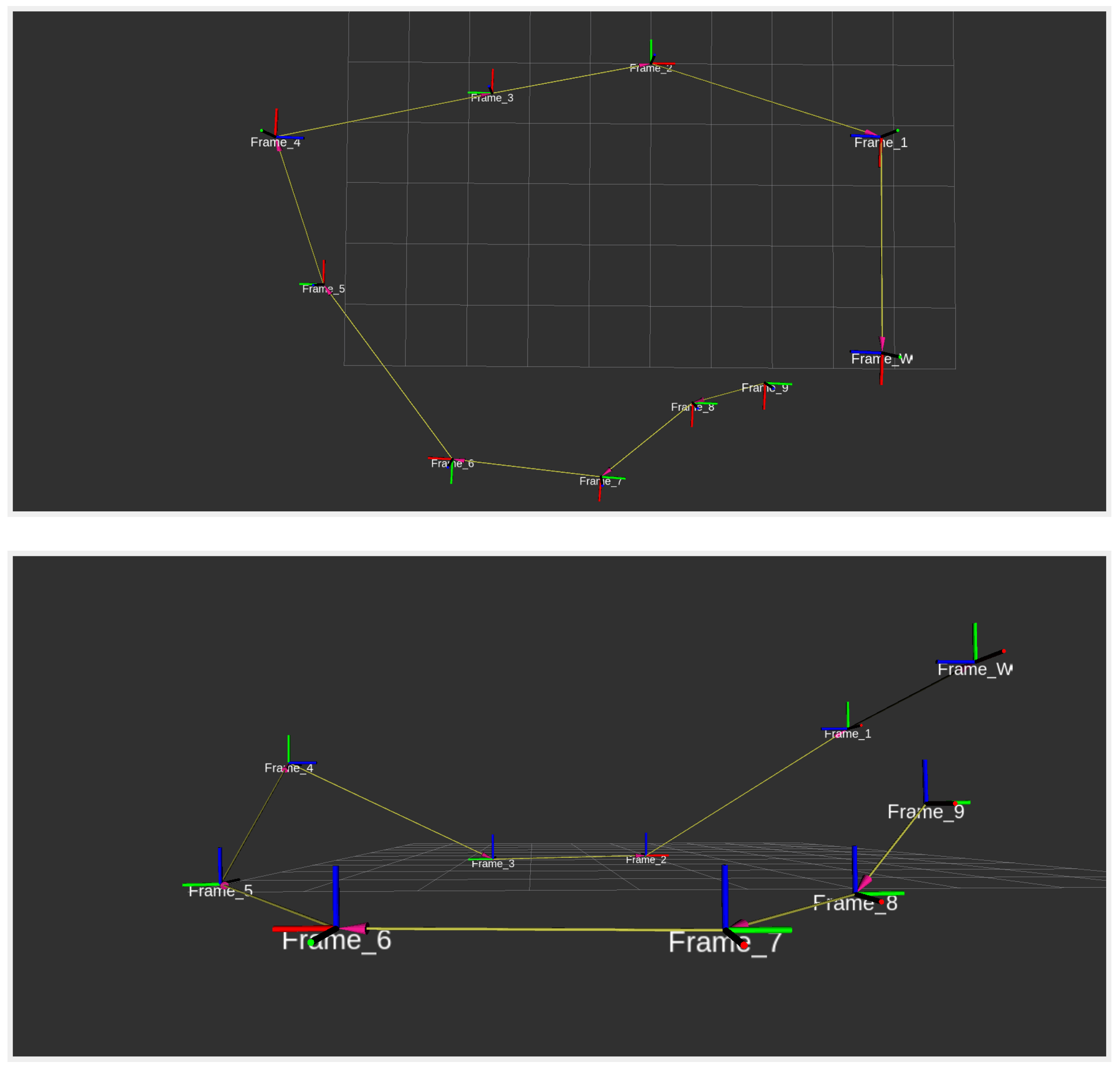 Figure 9, provided that the poses of the AprilTags remain unchanged after their initial registration, the same YAML file can be used to publish the static homogeneous transformations among the AprilTags. The results of publishing the poses of AprilTags, installed inside the