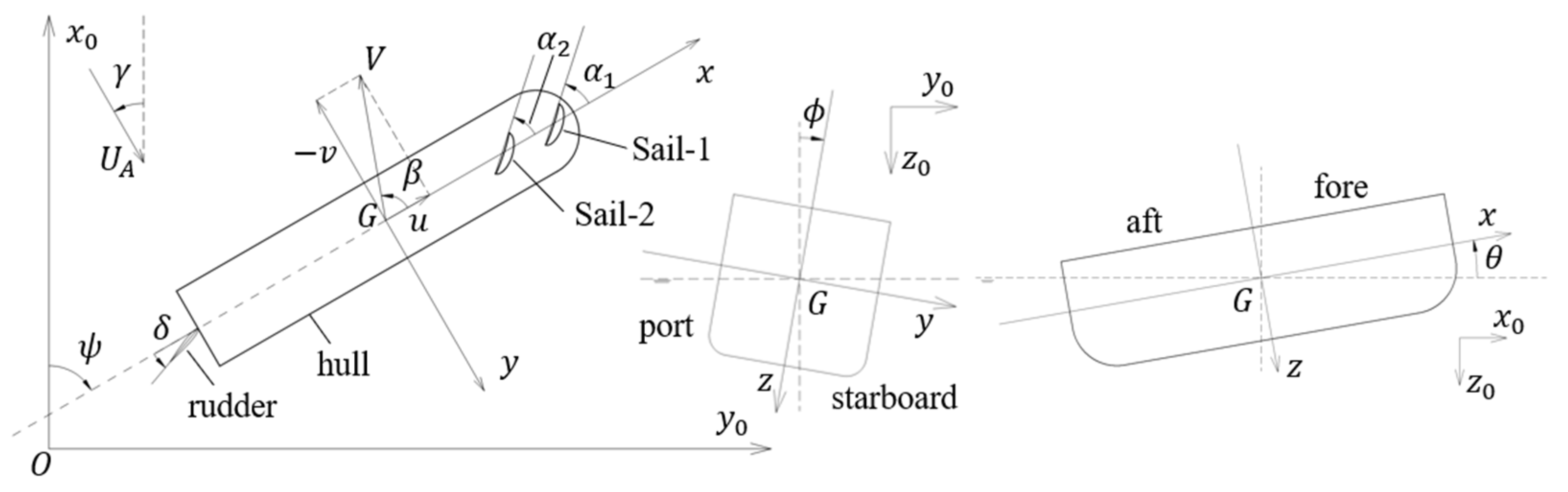 | Favorable tendencies | Tends to converge to a positive steady-state drift (leeway) angle ( > 0), indicating an opposite leeway direction compared with Case 2 under the present conditions | Tends to achieve a higher steady-state speed |