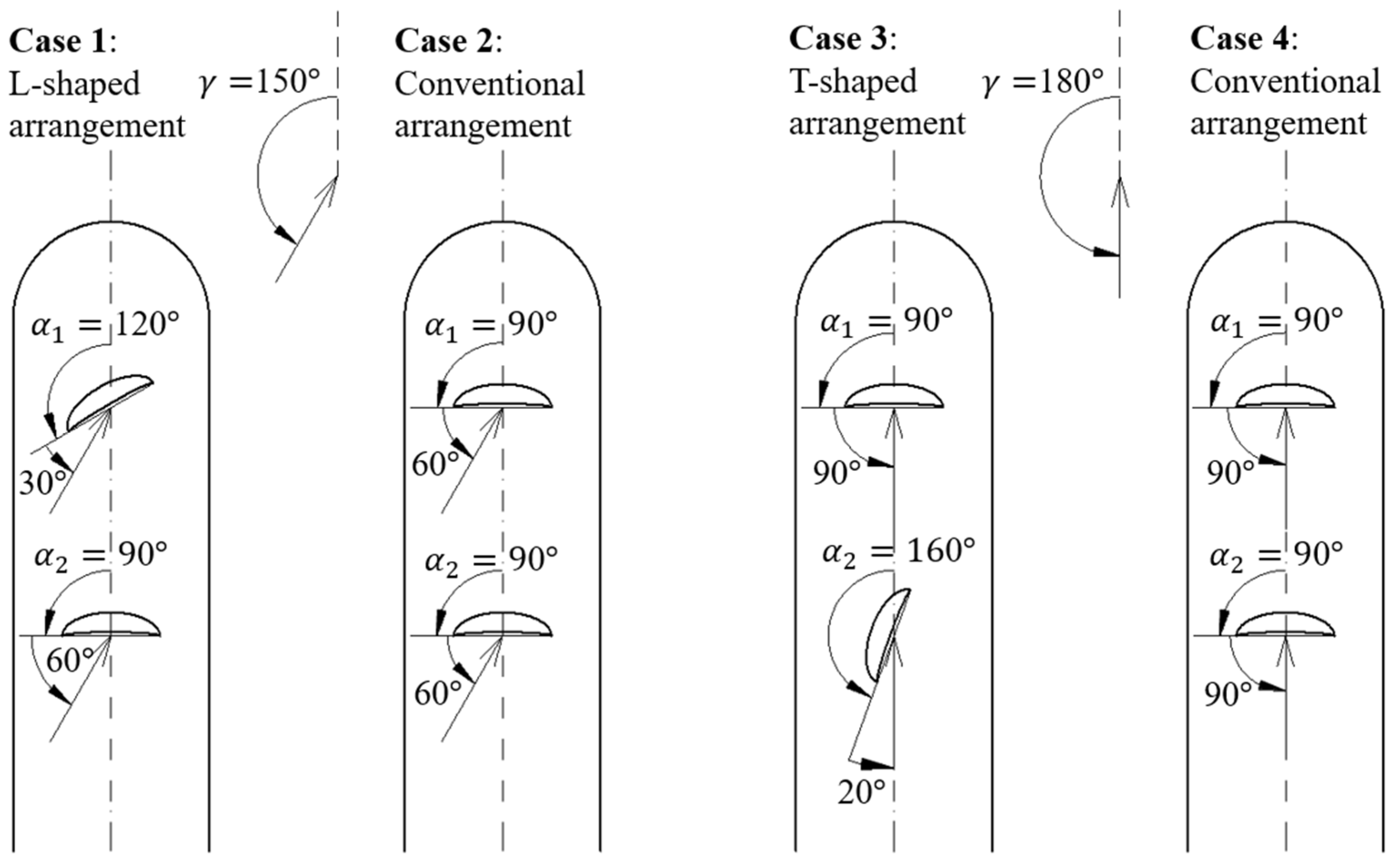 | | Case 3: T-Shaped Arrangement | Case 4: Conventional Arrangement |