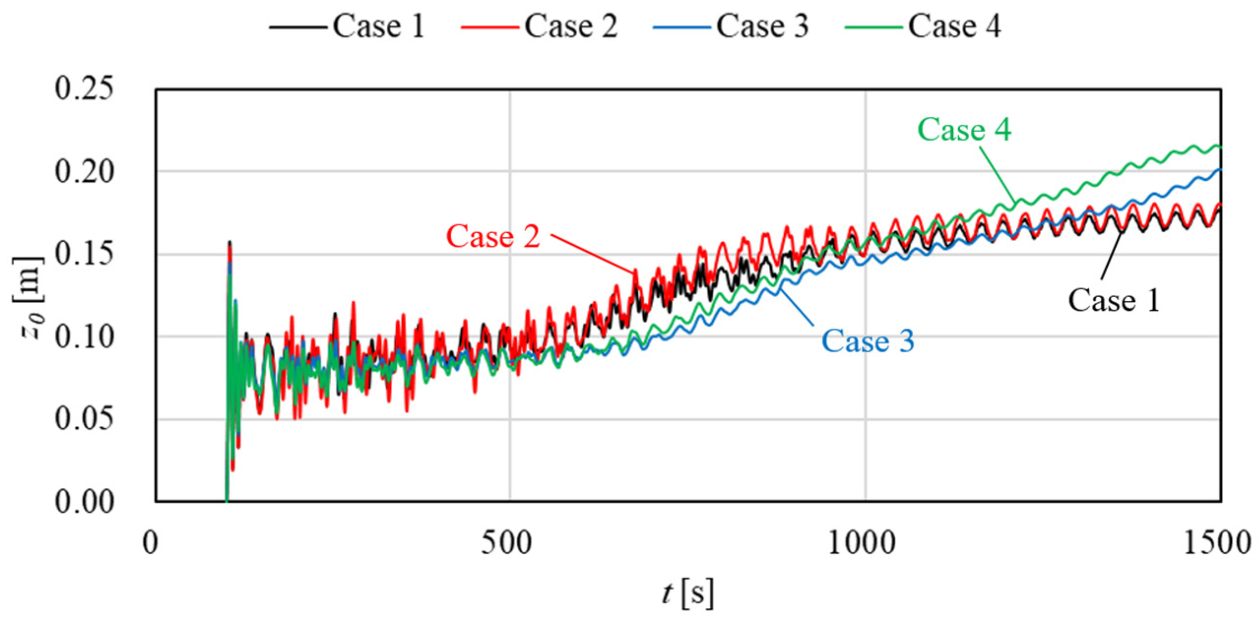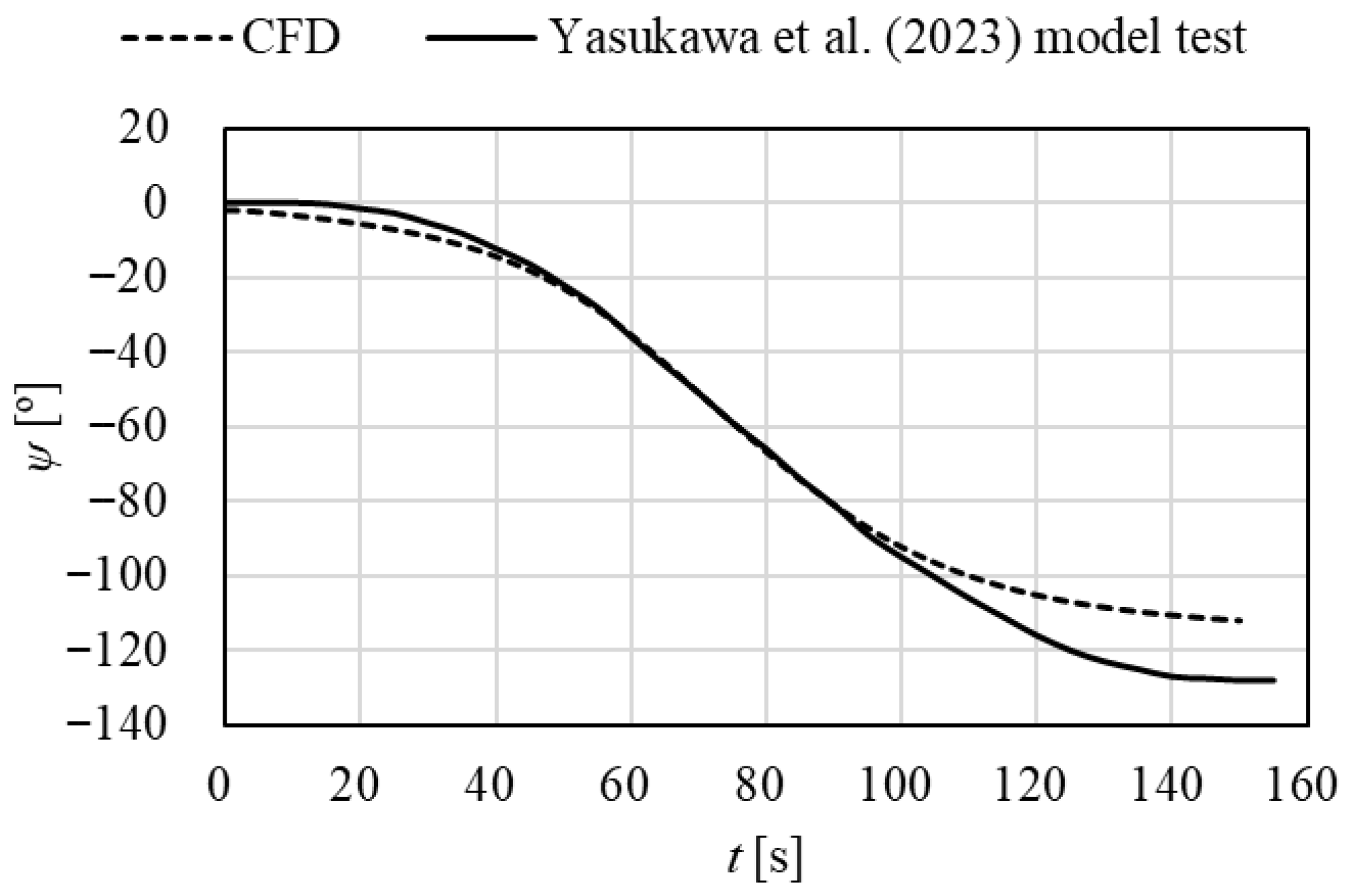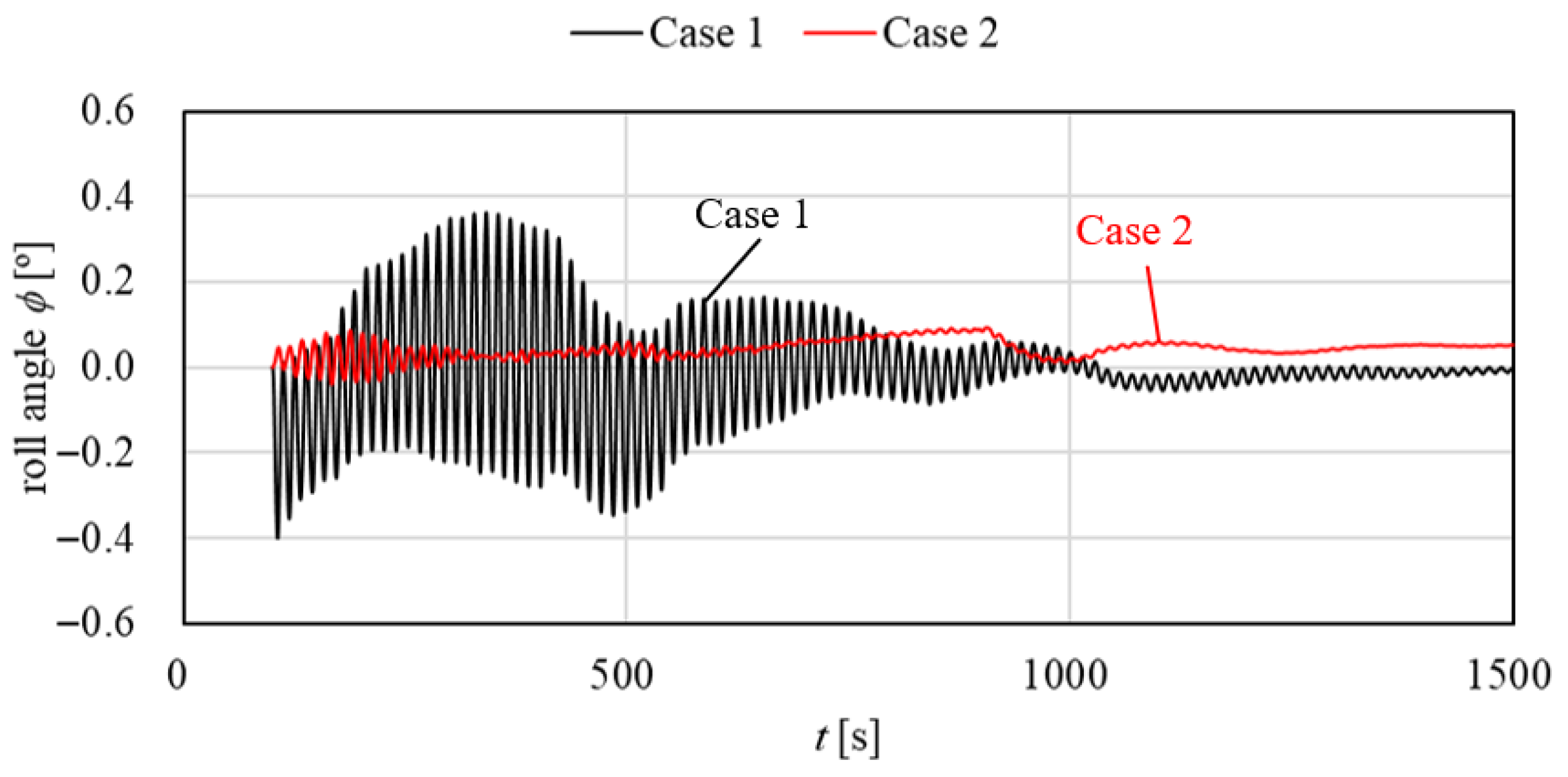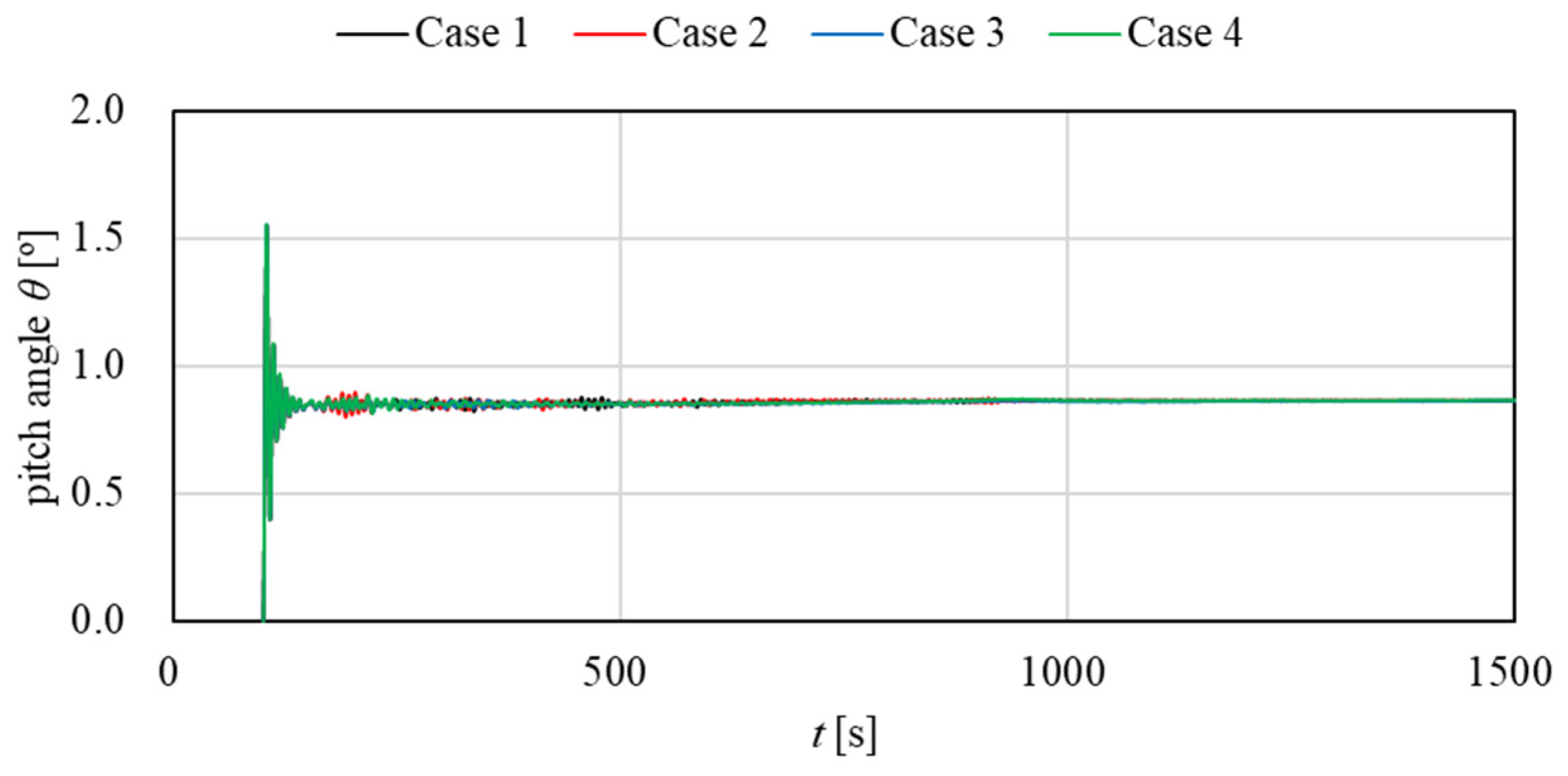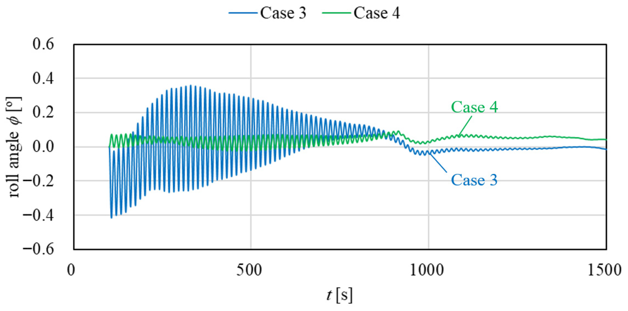 | Favorable tendencies | Tends to converge to a larger-magnitude steady-state drift (leeway) angle than Case 4 under the present conditions | Tends to achieve a higher steady-state speed |