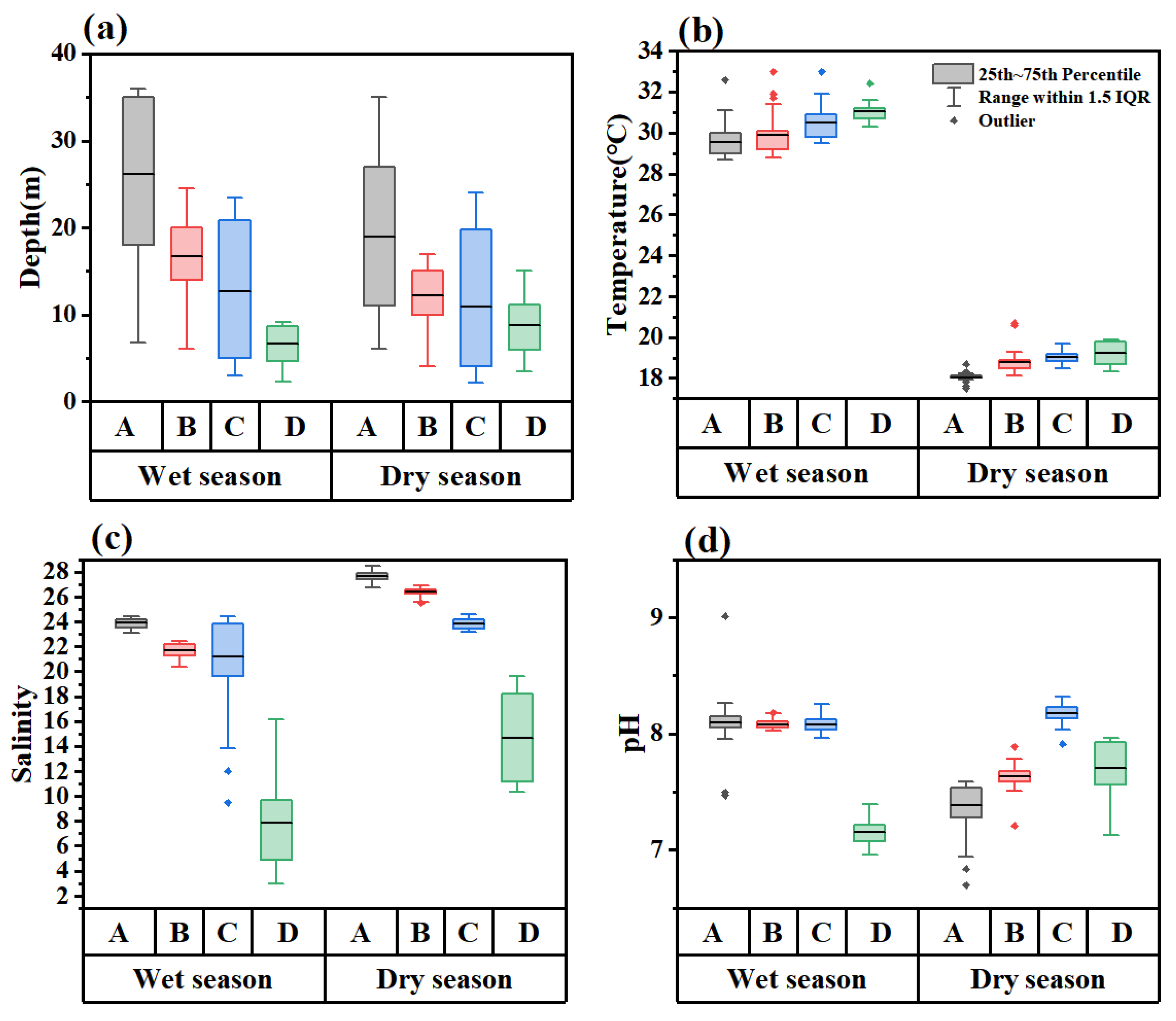 | Season | Transect | Depth(m) | Temperature(°C) | Salinity | pH |