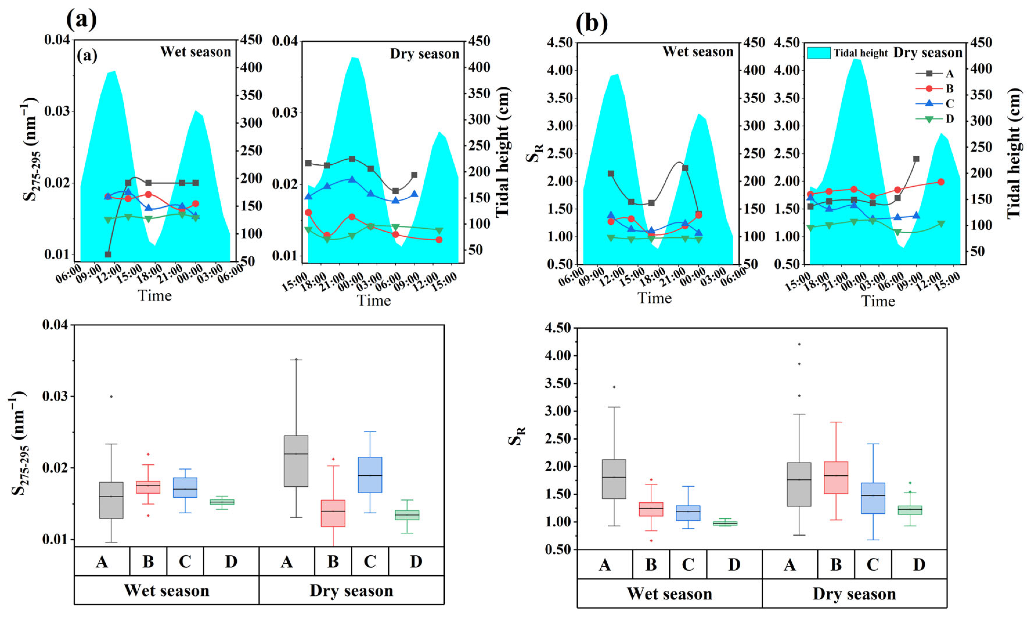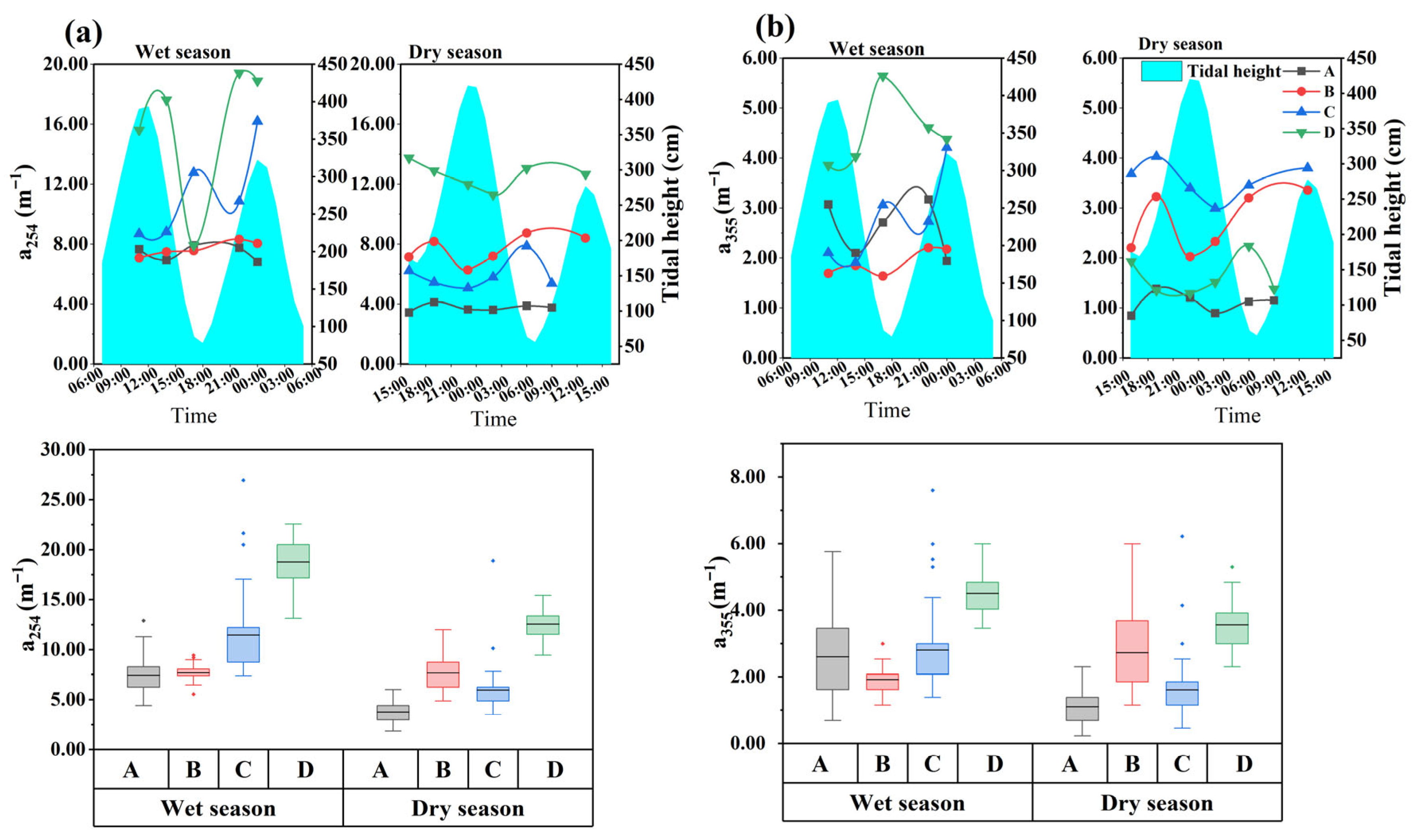 3.3. Characteristics of CDOM Under Tidal Dynamic Changes