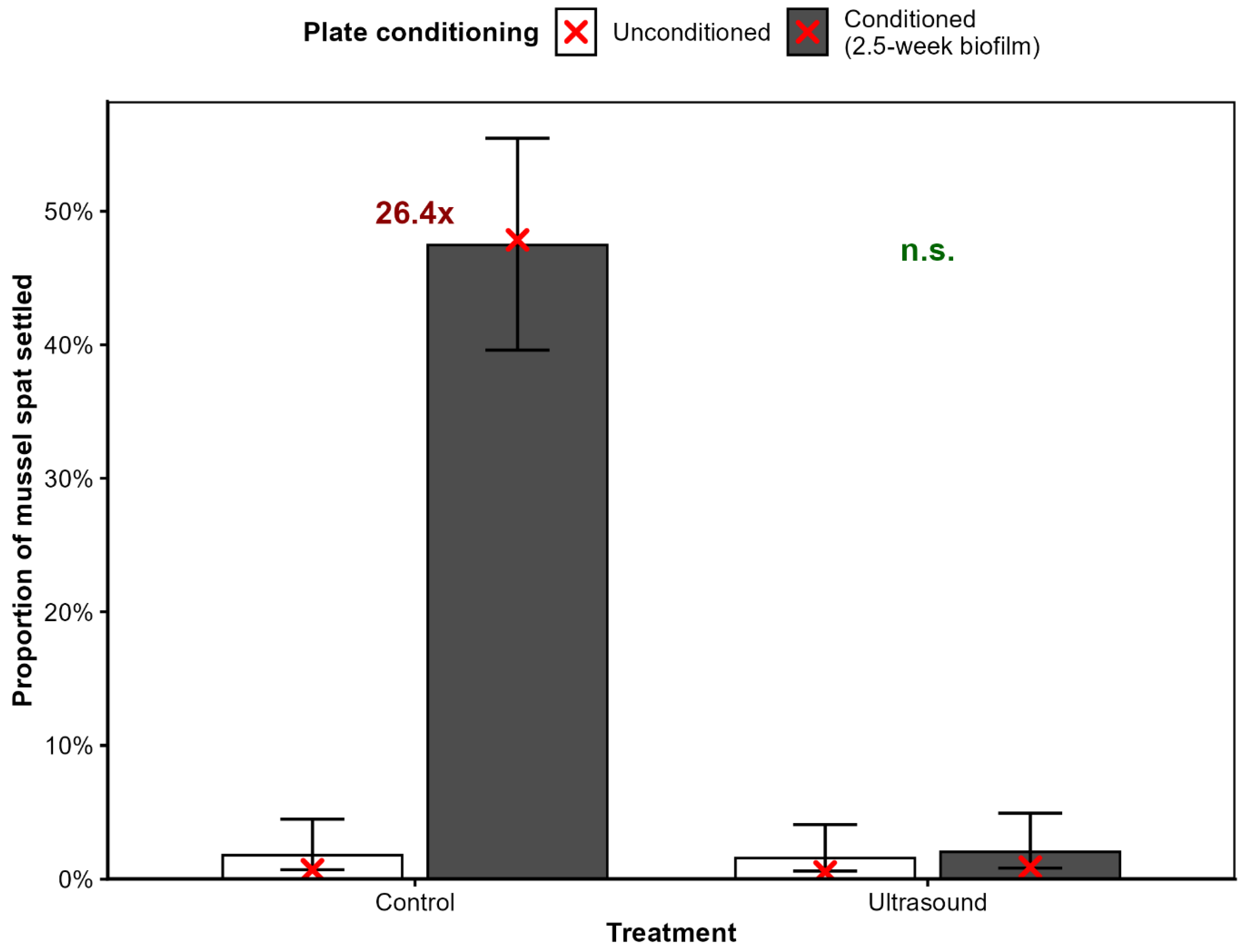 Ultrasonic Treatment Suppresses Biofilm-Mediated Larval Settlement of Mussels: A Pilot Study