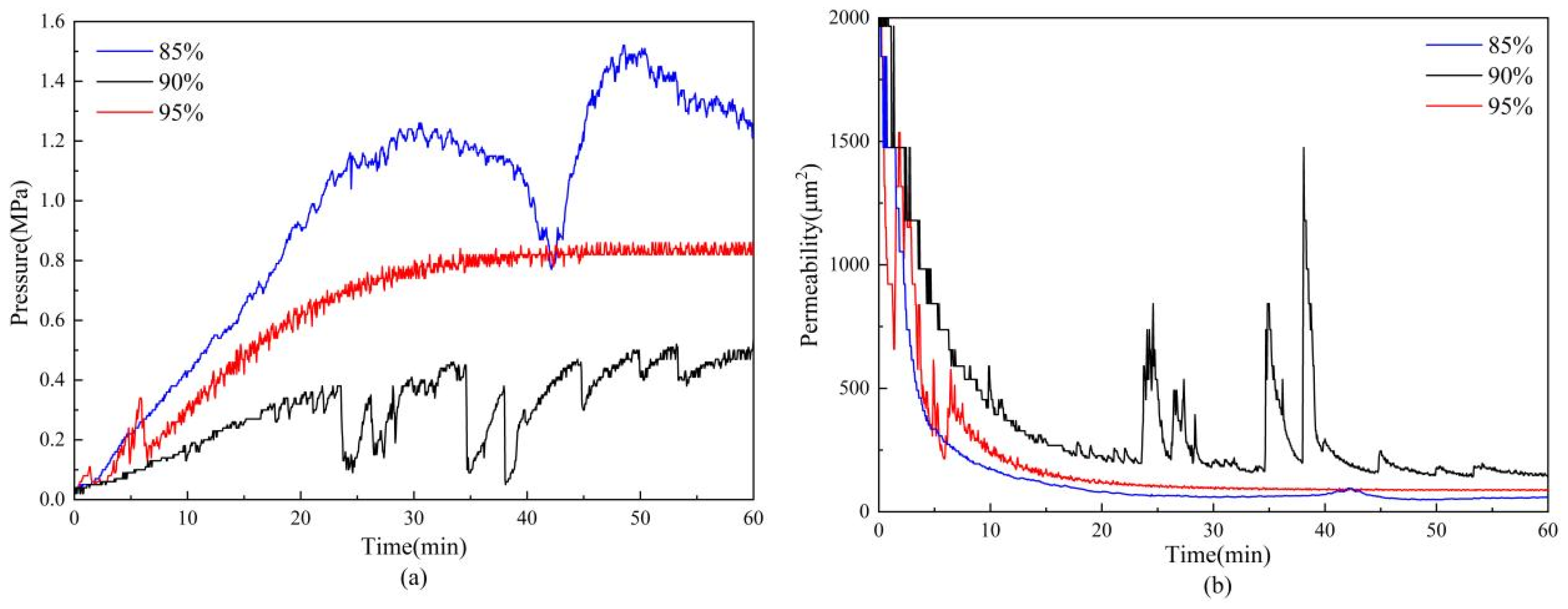- In field applications, it is critical to ensure sufficient packing thickness (≥25 mm) and packing density (90–95%). Insufficient thickness or low packing density leads to pronounced pressure fluctuations and can promote the formation of preferential sand-production channels or severe local plugging.