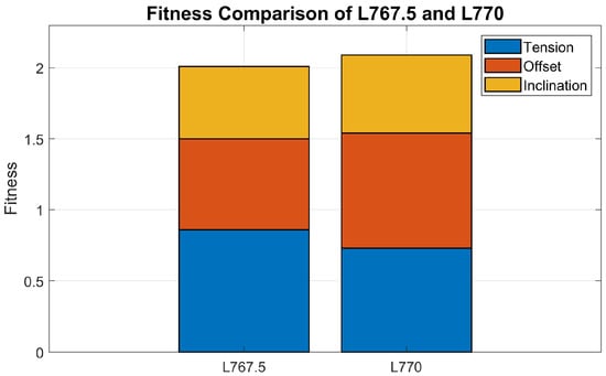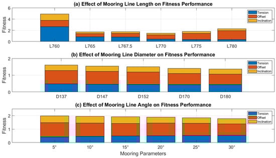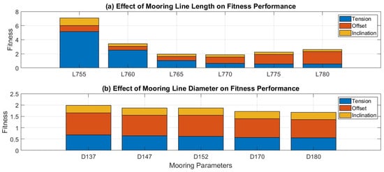 To evaluate the motion and loading responses of the floating wind turbine system, this study adopts a fitness function approach following Rentschler et al. [24] for quantitative assessment. Under ultimate limit state (ULS) conditions, the design is optimized by minimizing the fitness value to enhance overall safety and stability. Based on recommendations from COREWIND) [22] and DNV-RP-0286 [21], the maximum offset range (MOR) is set at 21 m and the maximum inclination range (MIR) at 15°.
