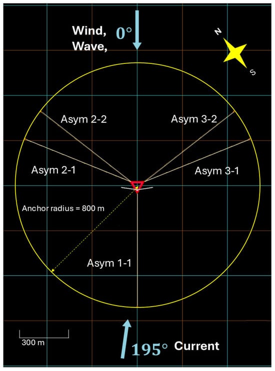 This section will further evaluate the mooring system’s performance based on relevant industry standards, with a focus on windward-side line failure, which represents the primary load-bearing direction. The objective is to verify whether the system can maintain sufficient structural integrity in the event of a line break, thereby preventing cascading failures, excessive platform offset, and potential collisions with navigation routes or other secondary hazards, as shown in Figure 25.