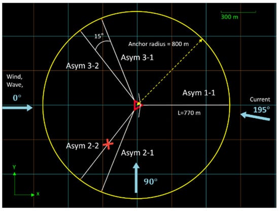 Top view of the ALS mooring line failure scenario design.
