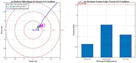 Normal ALS scenarios: (a) Platform offset trajectories; (b) Maximum tension comparison.