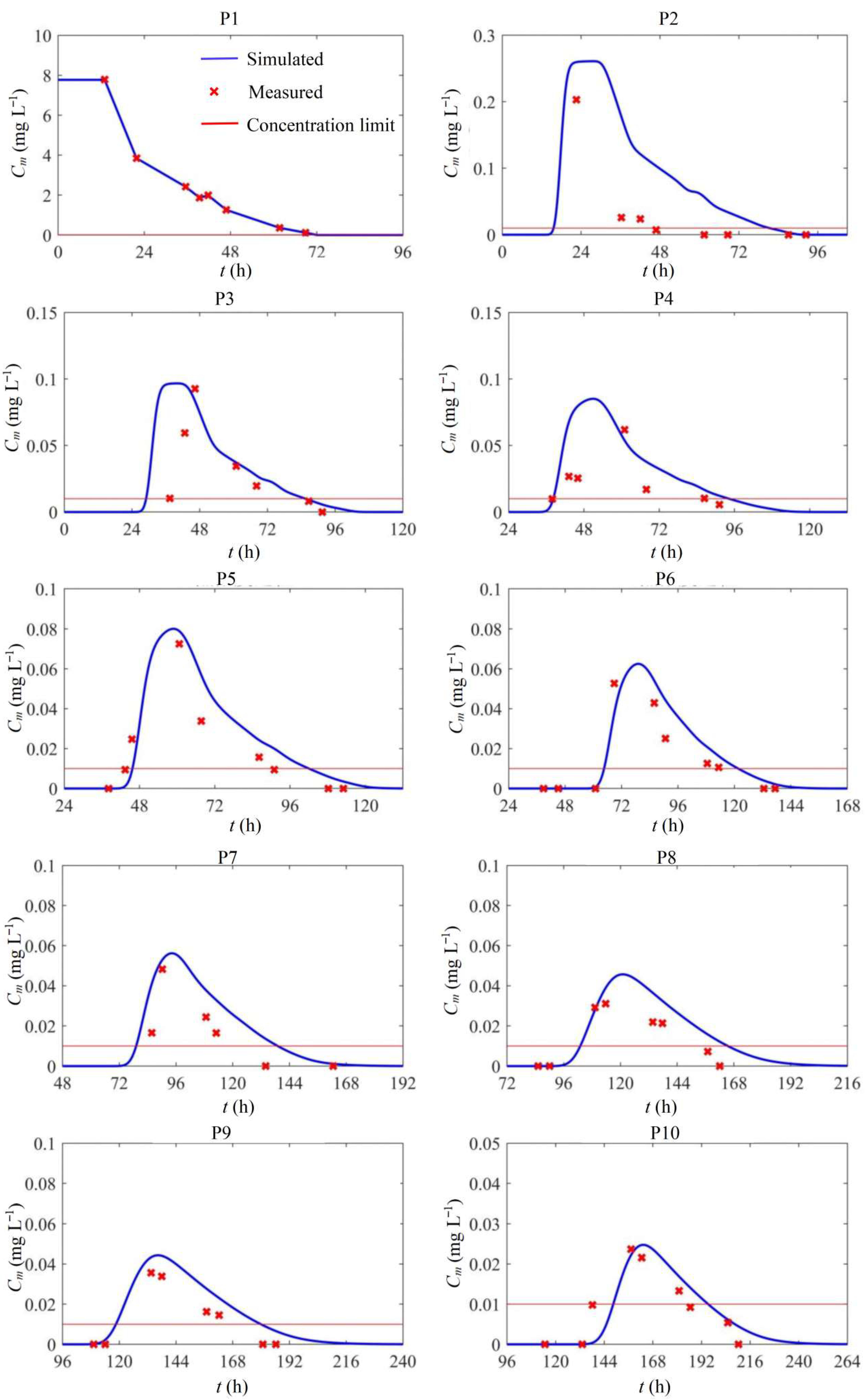 - Kong, J.; Xin, P.; Shen, C.-J.; Song, Z.-Y.; Li, L. A High-Resolution Method for the Depth-Integrated Solute Transport Equation Based on an Unstructured Mesh. Environ. Model. Softw. 2013, 40, 109–127. [Google Scholar] [CrossRef]