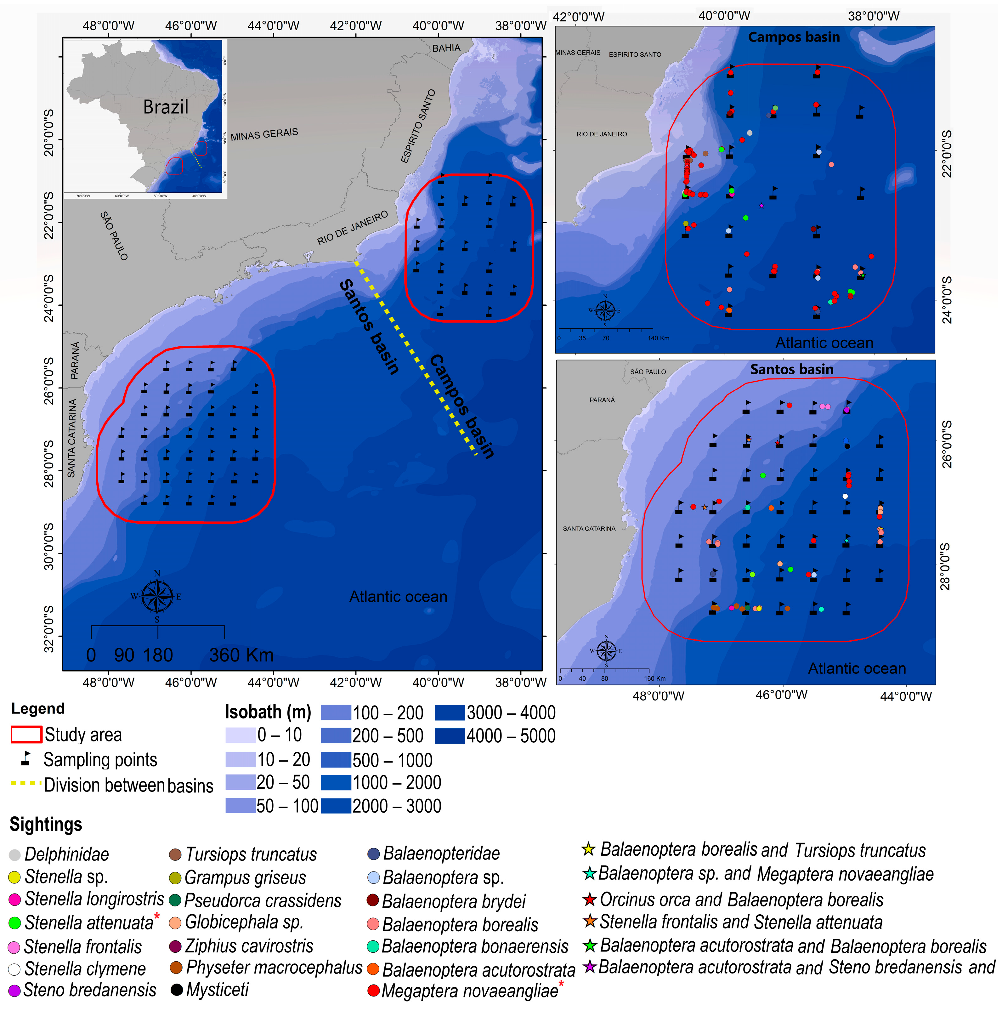- Oliveira, J.L.M.D.; Uller, G.A.; Derntl, J.R.; Ribeiro, C.C.D.S.; Pereira, E.; Miranda, C.M.D.; Ferraz, A.A.; Costa, L.D.S.D. Marine biota sightings during 3D marine seismic surveys. In Proceedings of the Anais da Rio Oil & Gas Expo and Conference 2004, Rio de Janeiro, Brazil, 1 July 2004. [Google Scholar]