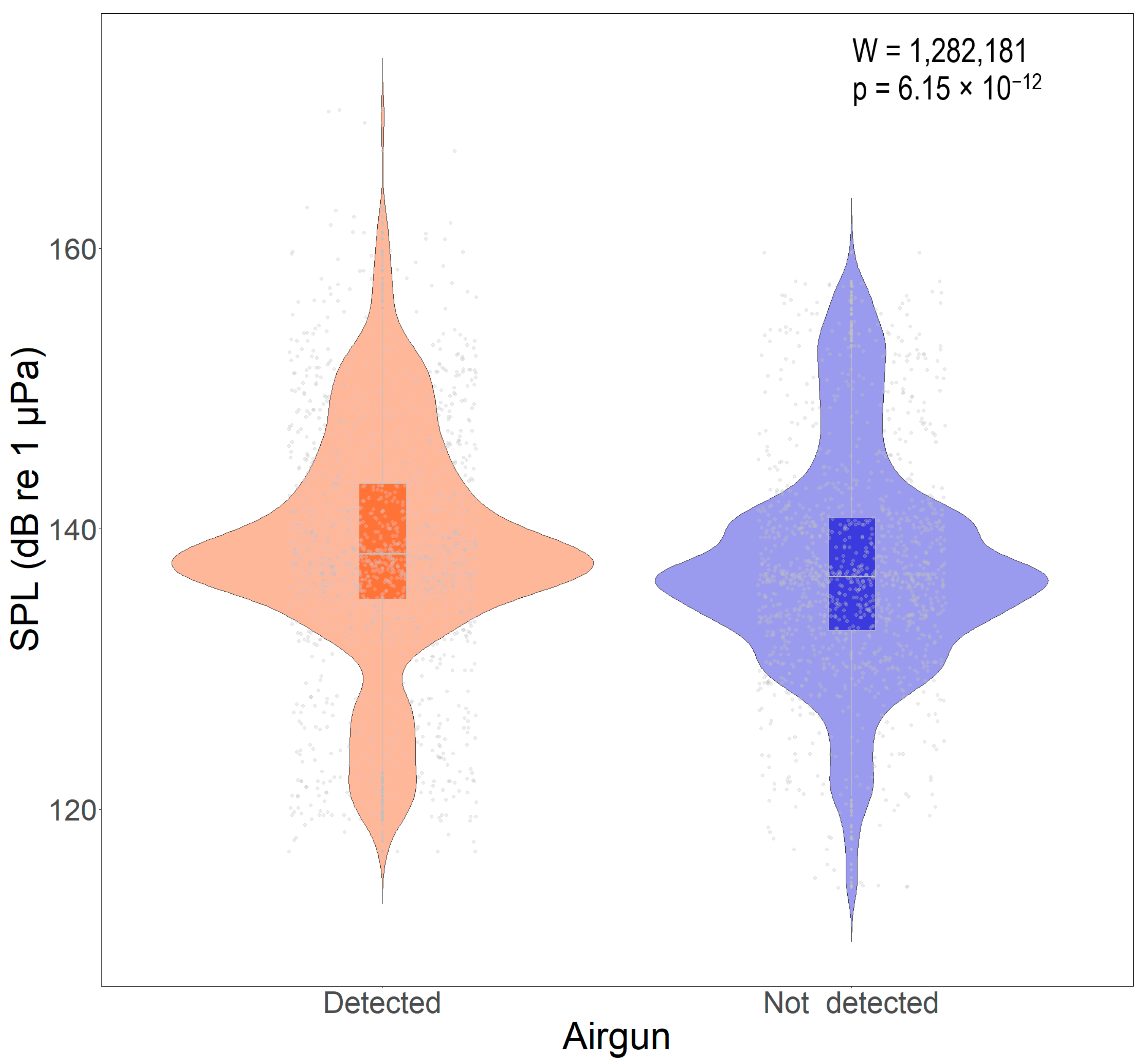 - Dunlop, R.; Noad, M. Male humpback whales switch to singing in the presence of seismic air guns. Commun. Biol. 2024, 7, 1232. [Google Scholar] [CrossRef] [PubMed]