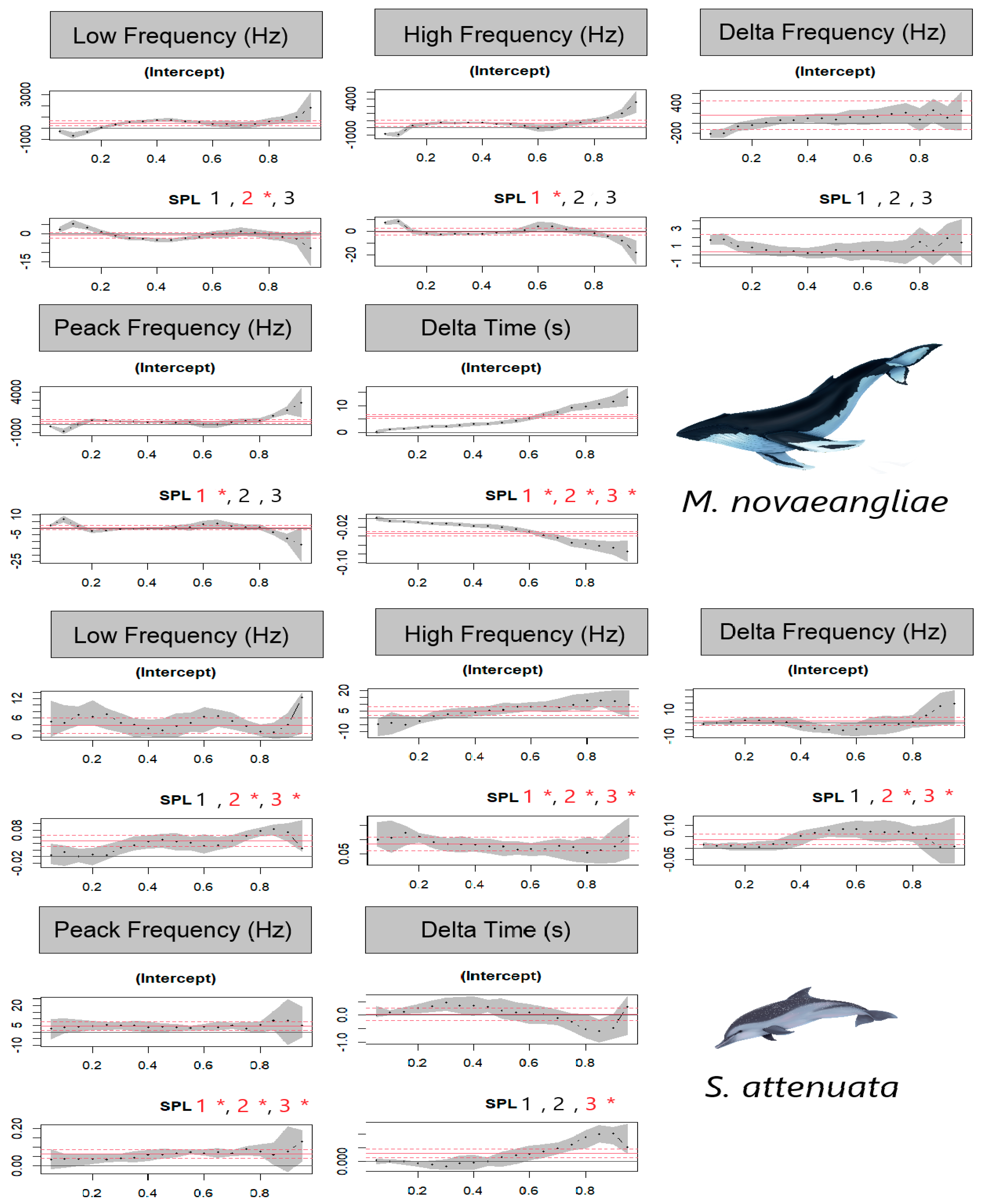 | M. novaeangliae | Low Frequency (Hz) | 0.25 | −1.0253 | 0.659 | −1.55 | 0.12014 |