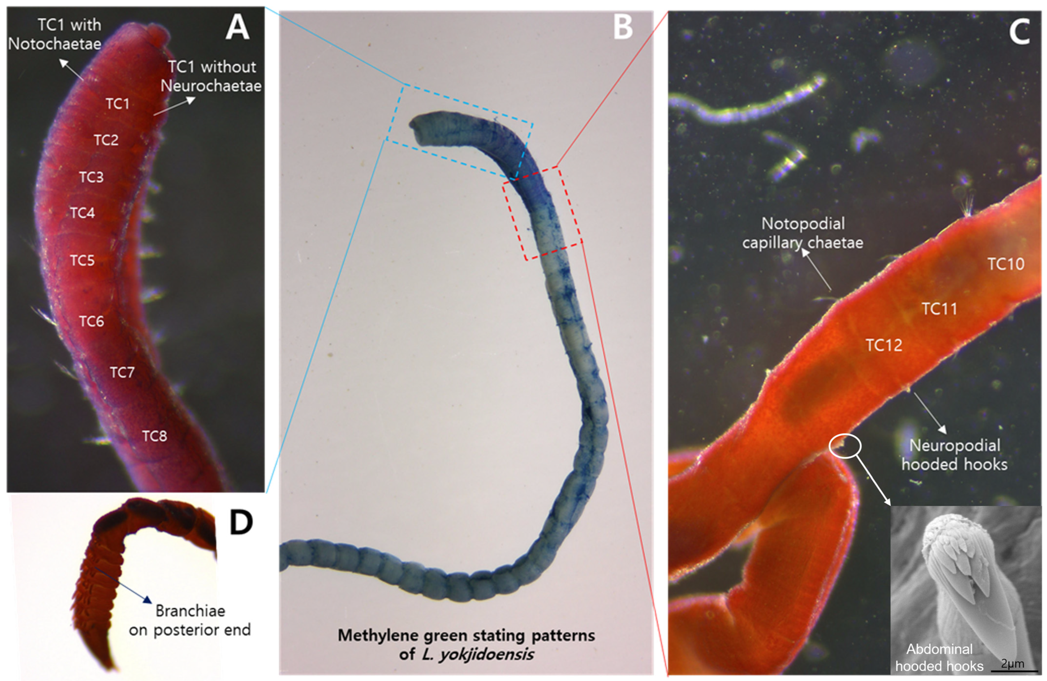 - MGSP: The staining pattern was consistent with the type description of L. yokjidoensis, showing strong staining on TC6–9 and distinct patterns on posterior segments.
