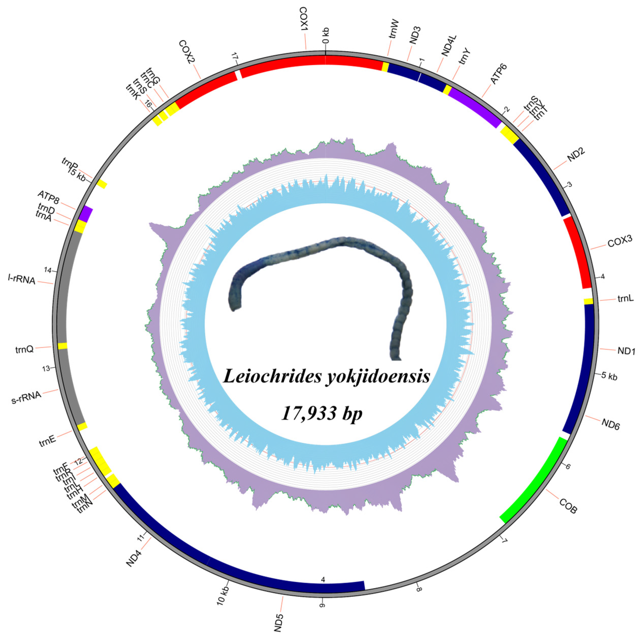 - Bleidorn, C.; Podsiadlowski, L.; Bartolomaeus, T. The complete mitochondrial genome of the orbiniid polychaete Orbinia latreillii (Annelida, Orbiniidae)–A novel gene order for Annelida and implications for annelid phylogeny. Gene 2006, 370, 96–103. [Google Scholar] [CrossRef]
