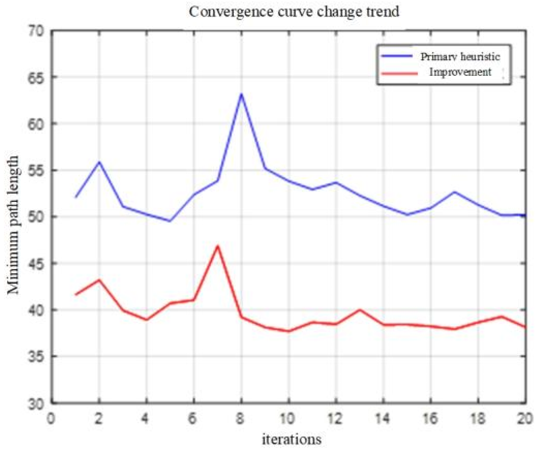 Figure 10 further underscores the accelerated convergence speed facilitated by the improved heuristic function, significantly reducing the likelihood of convergence oscillations.
