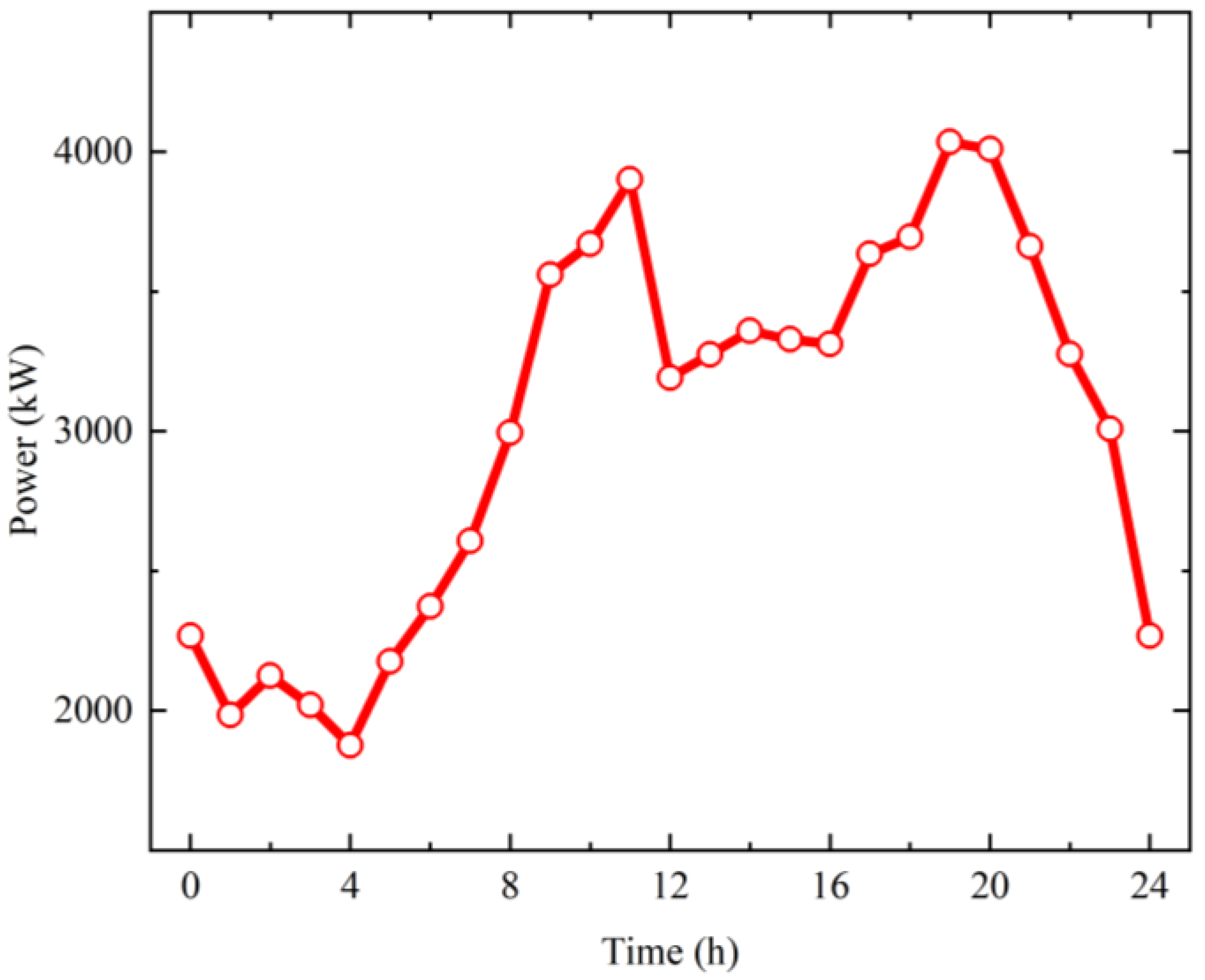 To align with the probabilistic forecasting framework of this study, the output of the PV system is modeled as an uncertain variable. A typical daily PV generation pattern for the Wuxi region is used as a baseline. To account for the inherent variability and intermittency of solar energy due to weather changes, a random adjustment is applied to this baseline profile in each Monte Carlo simulation trial. This approach ensures that the renewable generation input reflects real-world uncertainty, consistent with the treatment of ship-related stochastic variables.