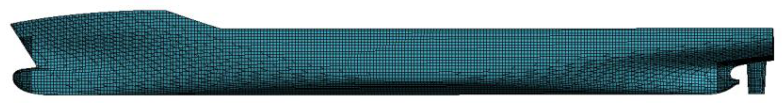 - Li, L.Y.; Wu, J.W.; Wan, D.C. CFD-based optimization of resistance and pitch of KCS ship with appendages in waves. Chin. J. Ship Res. 2022, 17, 63–72. [Google Scholar]