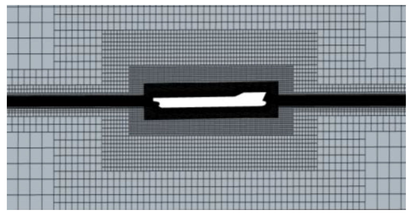 - Wilson, R.; Stern, F. Verification and validation for RANS simulation of a naval surface combatant. AIAA Aerosp. Sci. Meet. Exhib. 2013, 53, 341–345. [Google Scholar]