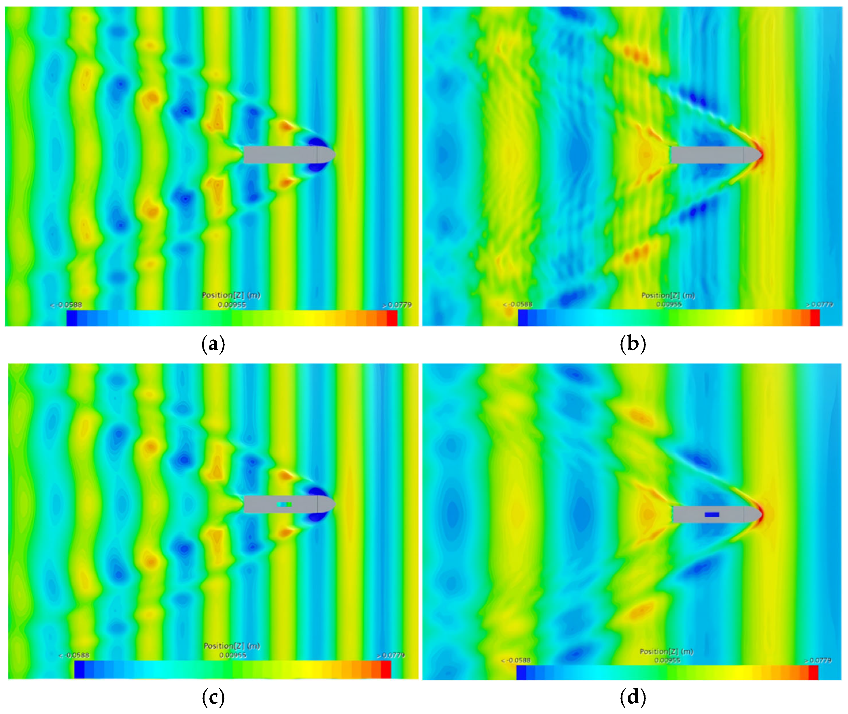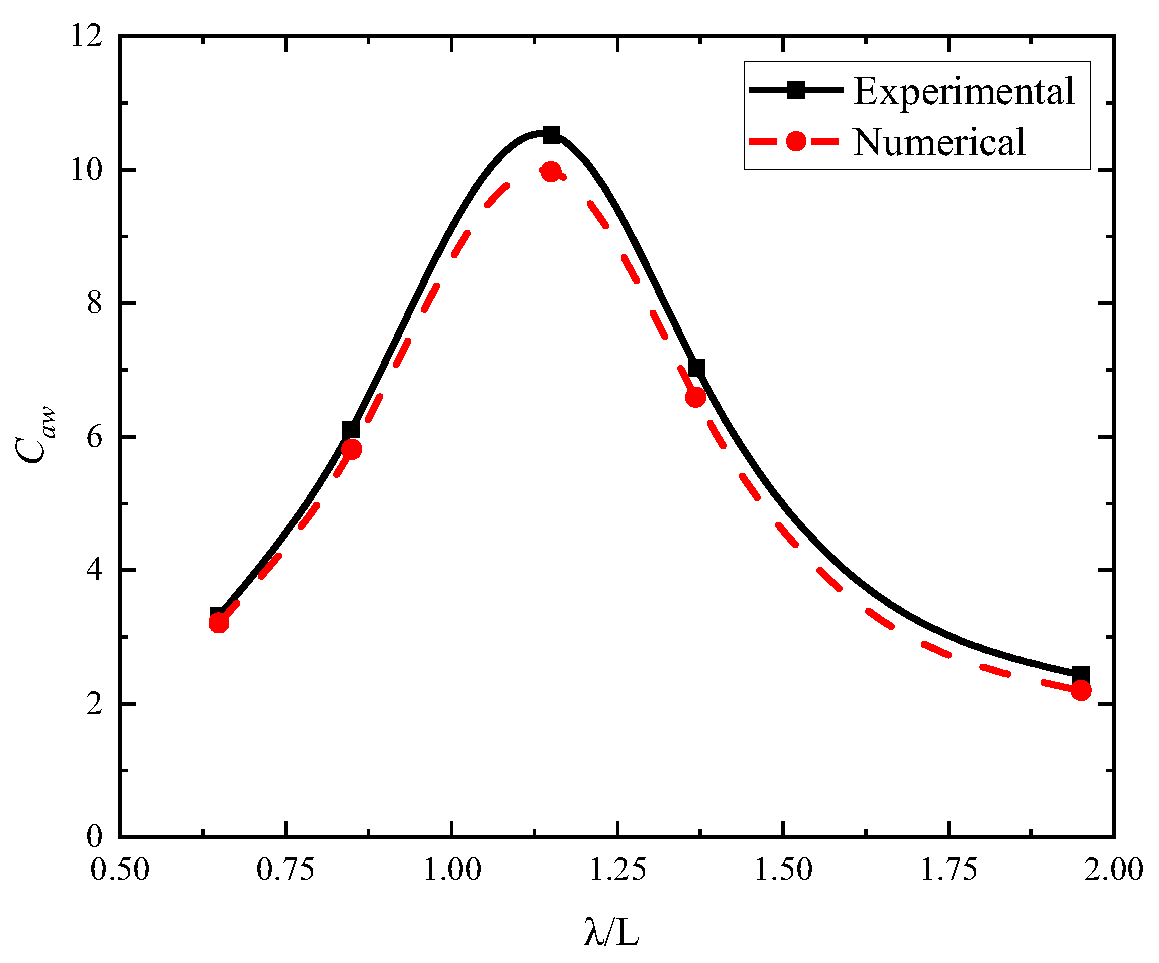 3.5. Numerical Validation of KCS Ship Wave Navigation