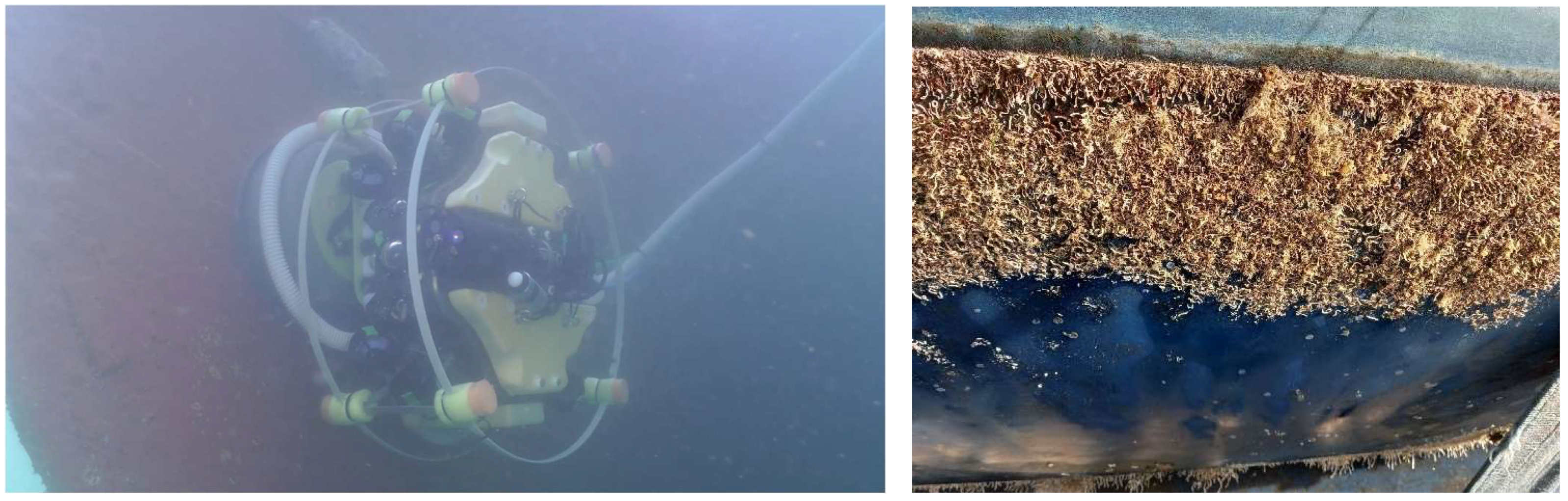 - Odfjell Becomes Pilot Partner in Promising ROV Technology for Improved Hull Cleaning. Available online: https://www.odfjell.com/about/our-stories/supporting-bergens-maritime-cluster/ (accessed on 20 November 2025).