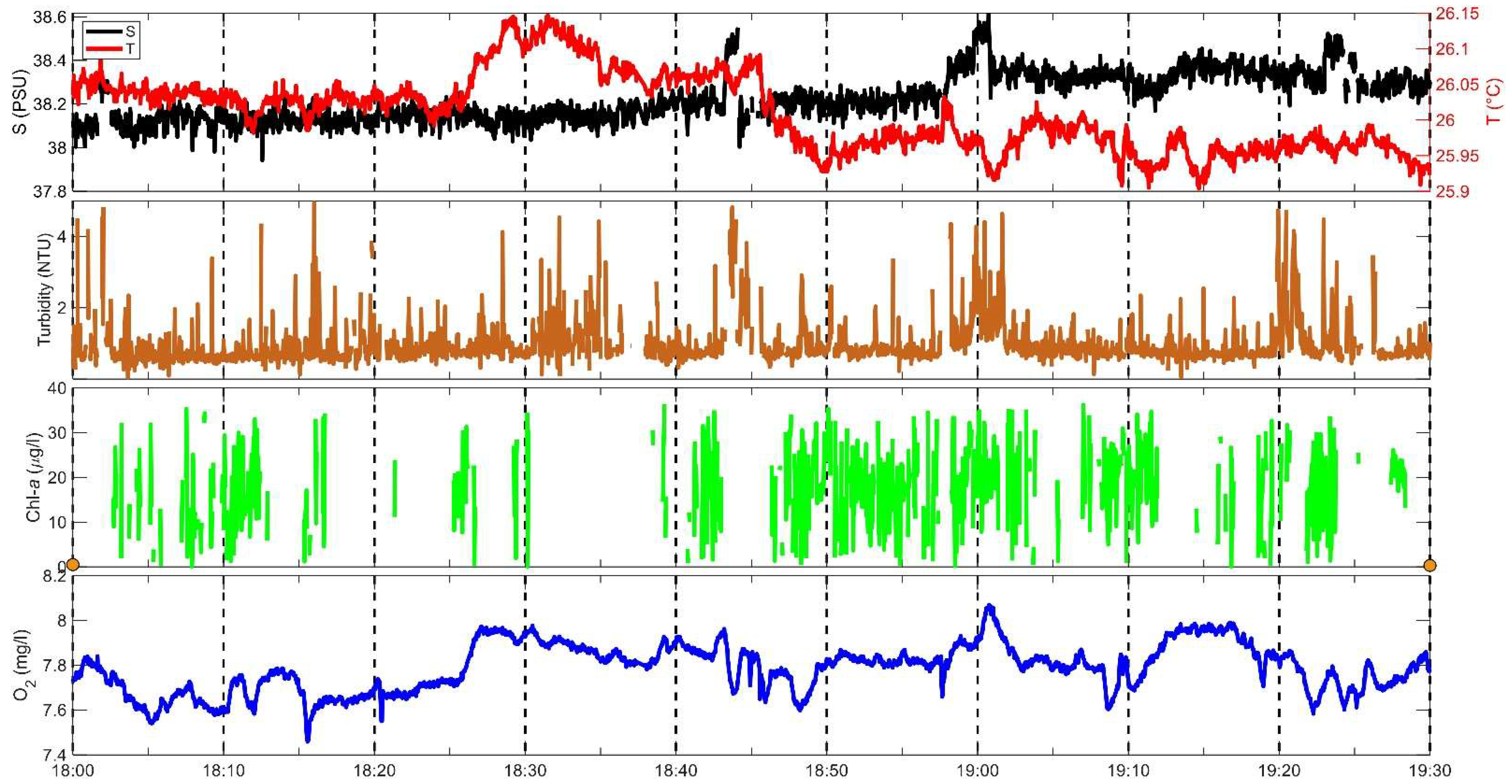 | Environmental monitoring | 7 seawater parameters (WiMo probe) |