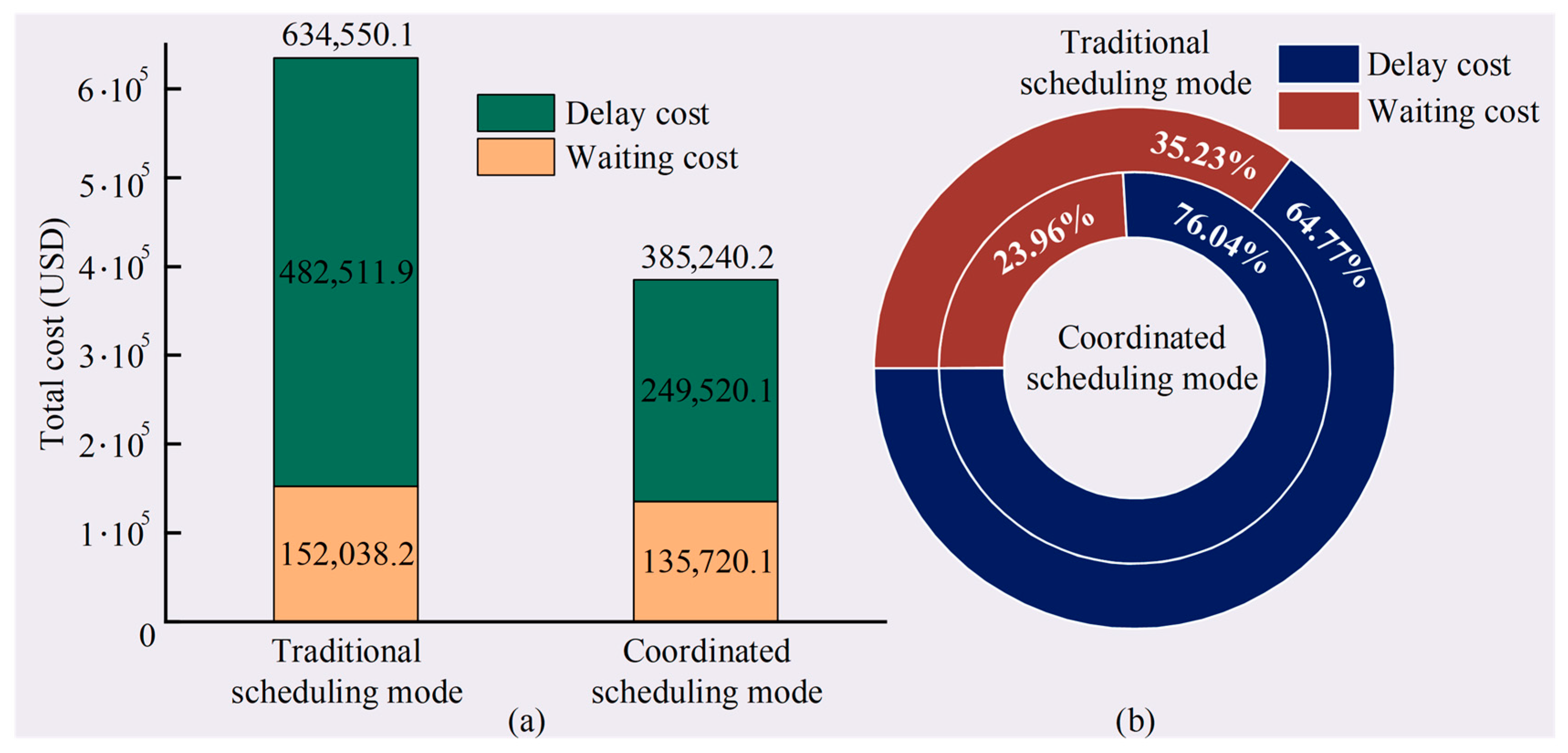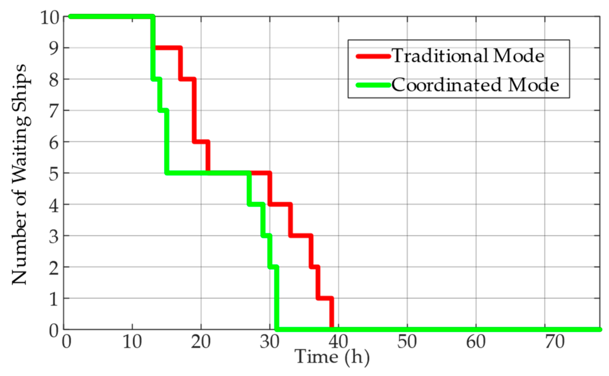 | Economic coefficients | Table 5 and Table 6, waiting and delay costs | Estimated using reported ranges in port operation studies. These coefficients are used for relative comparison between operational modes under the same fleet inputs. |