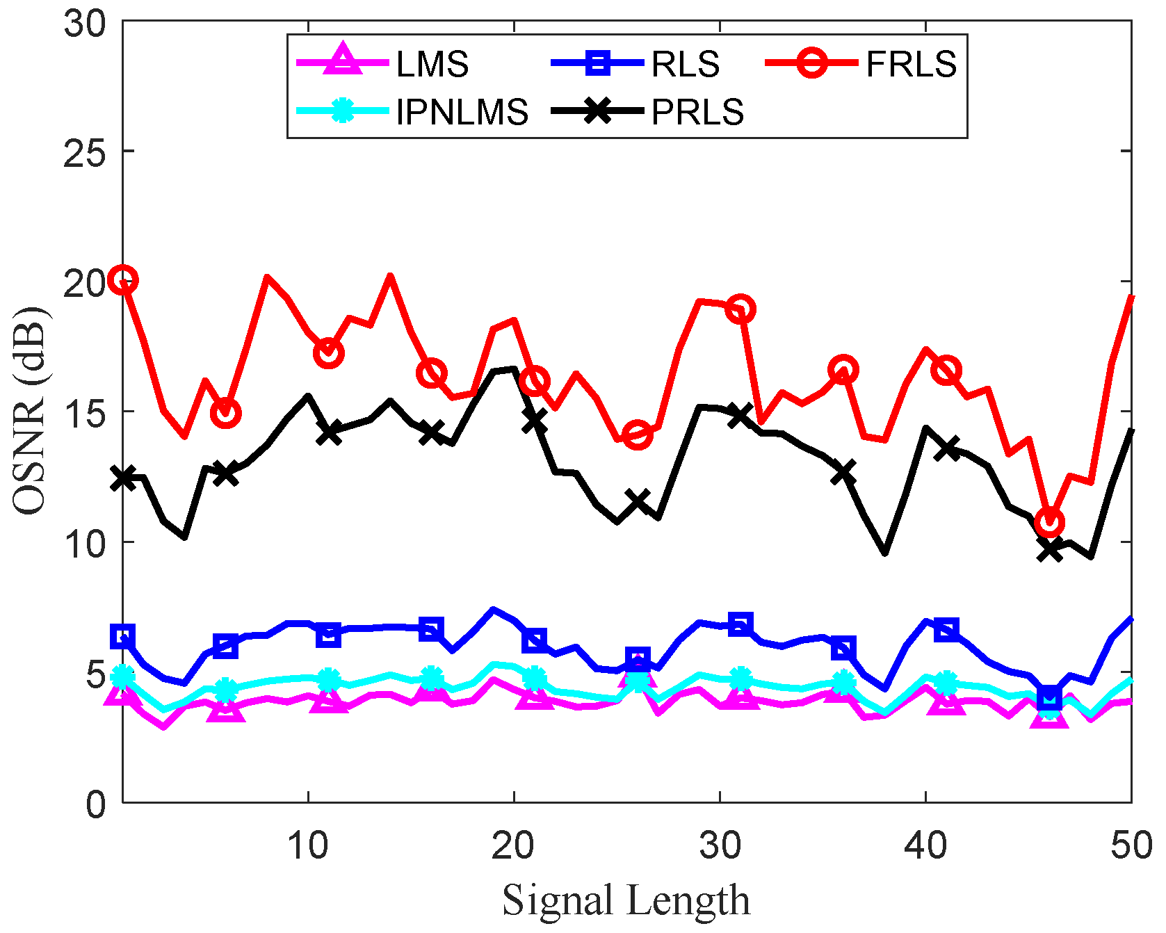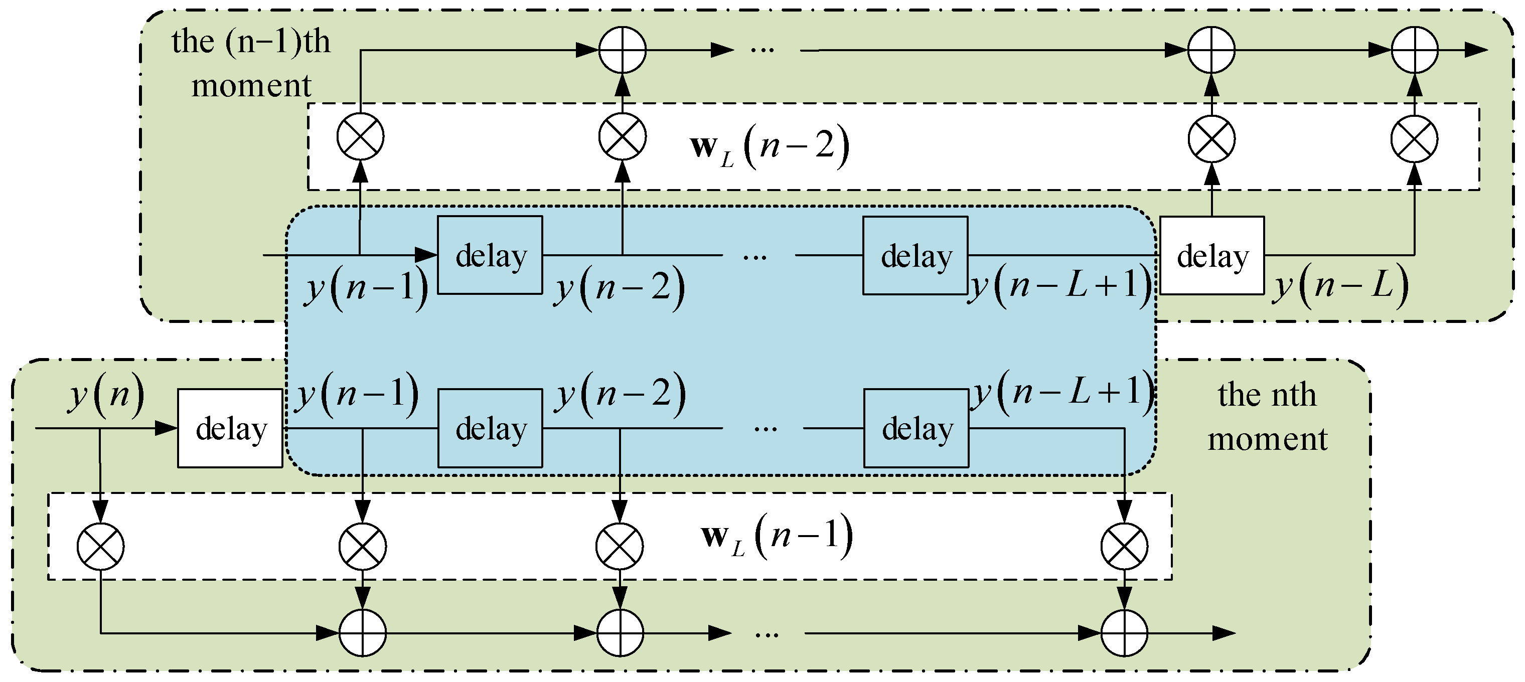28] proposed a data-reuse-based RLS algorithm, which makes full use of prior information by reusing the input signal of the filter at the same moment. However, all the above RLS algorithms are affected by the matrix inversion of the autocorrelation coefficient matrix, resulting in a computational complexity of