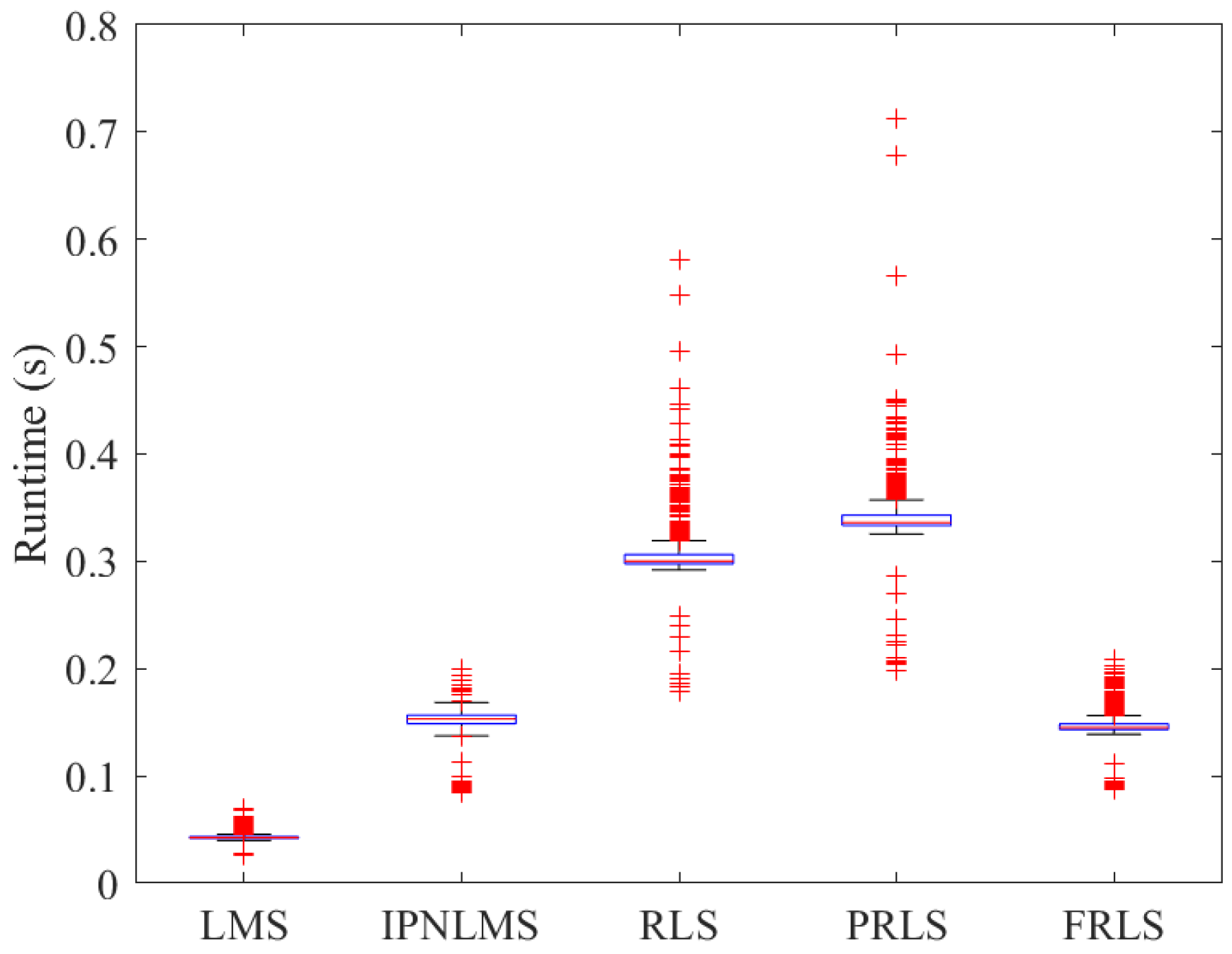- Duttweiler, D.L. Proportionate normalized least-mean-squares adaptation in echo cancelers. IEEE Trans. Speech Audio Process. 2000, 8, 508–518. [Google Scholar] [CrossRef]