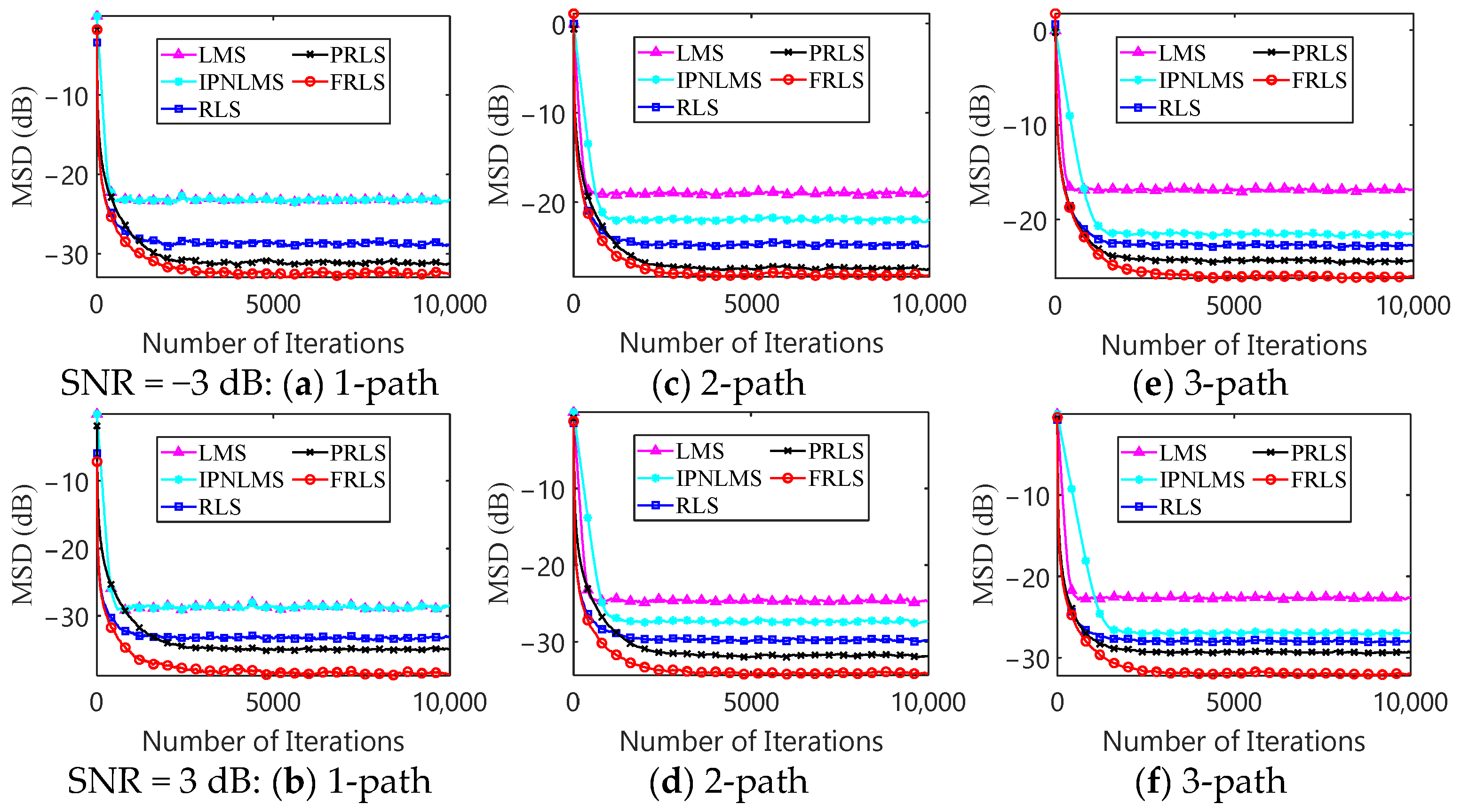 - Qin, Z.; Tao, J.; Xia, Y. A Proportionate Recursive Least Squares Algorithm and Its Performance Analysis. IEEE Trans. Circuits Syst. II-Express Briefs 2021, 68, 506–510. [Google Scholar]
