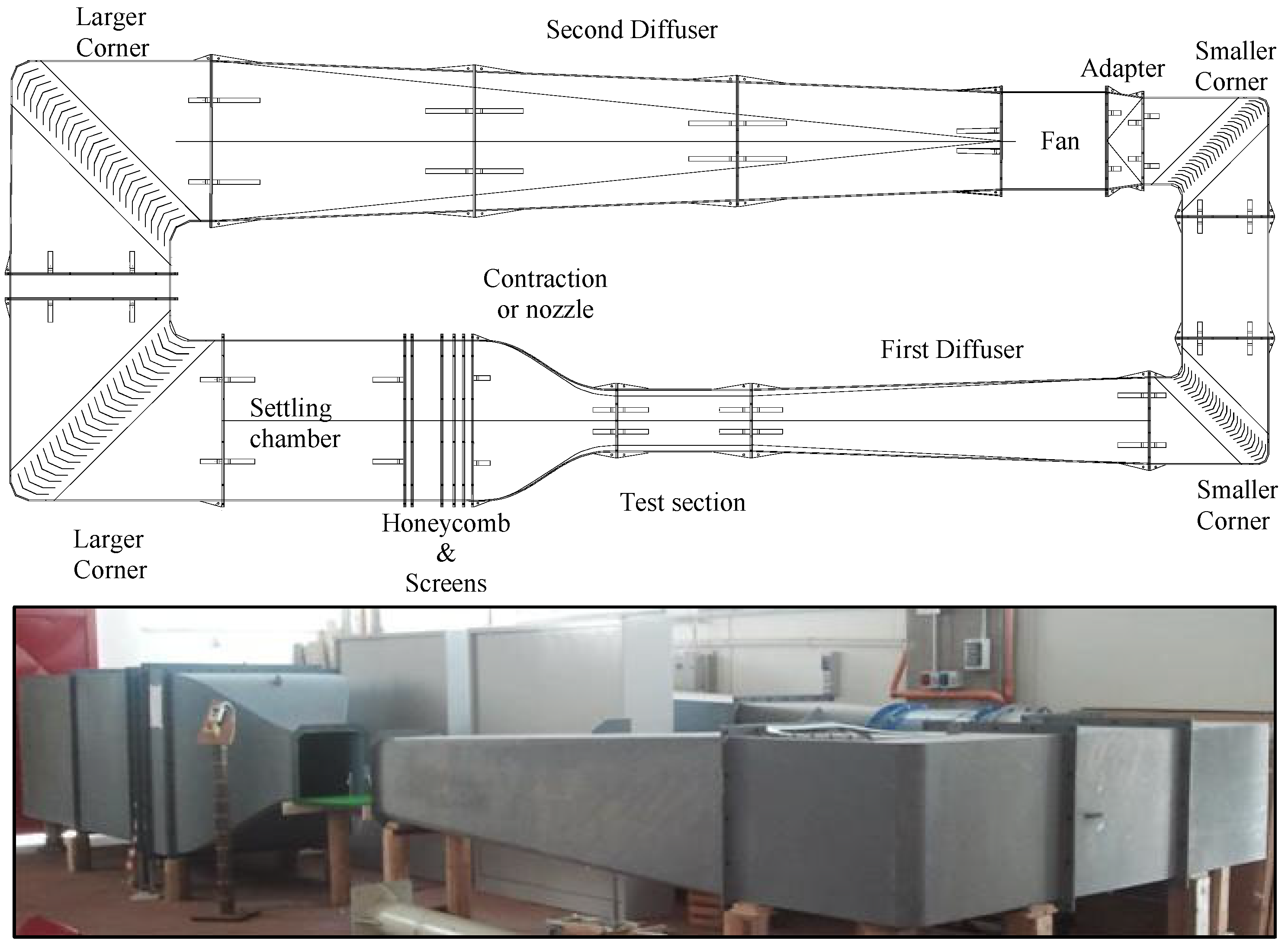 - Brusca, S.; Lanzafame, R.; Messina, M. Low Speed Wind Tunnel: Design and Build. In Book Wind Tunnels: Aerodynamics, Models and Experiments; Pereira, J.D., Ed.; Nova Science Publisher Inc.: New York, NY, USA, 2011. [Google Scholar]