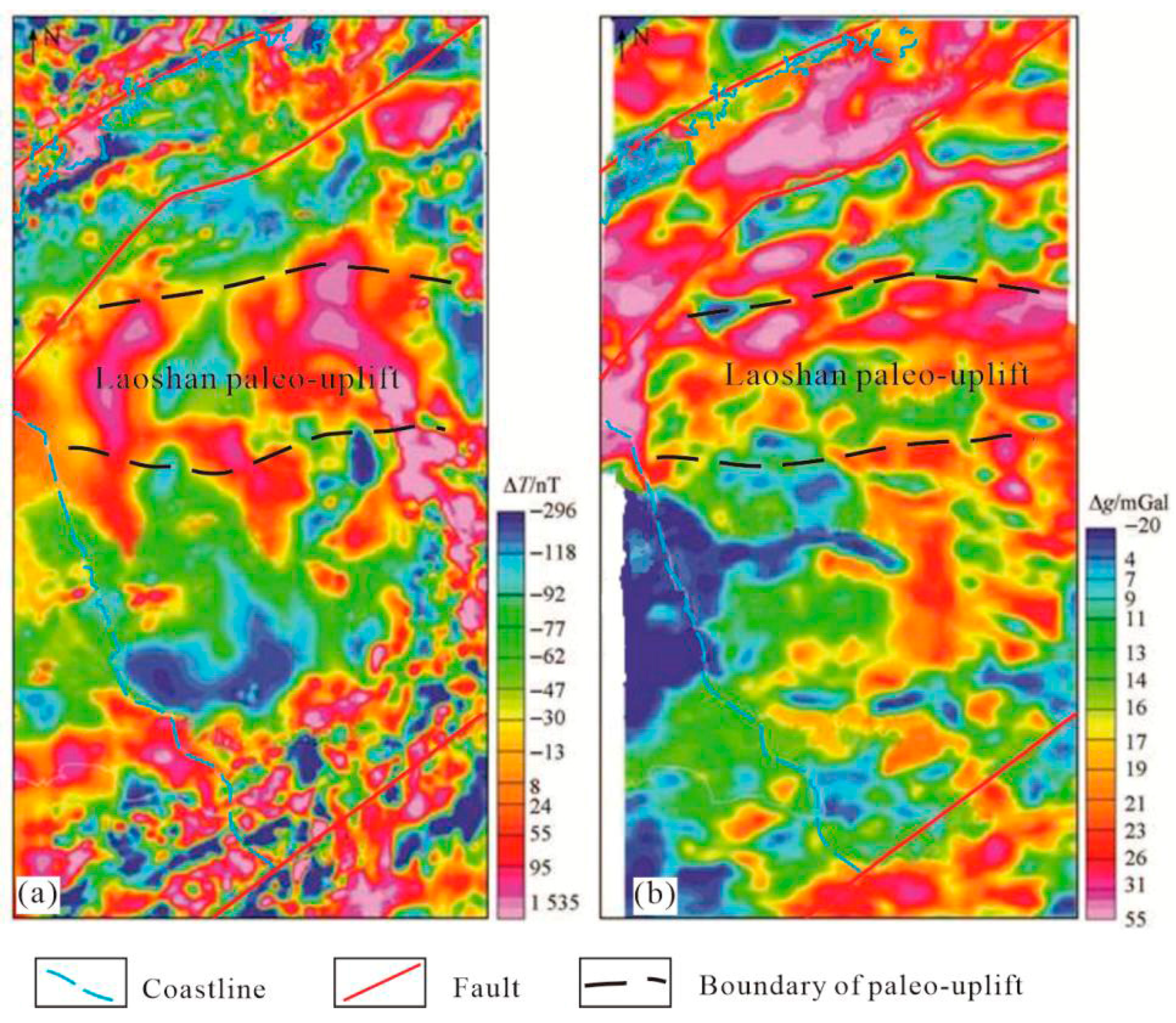 - Tong, J.; Zhang, W.; Zhang, X.J.; Xiong, S.Q. Characteristics of marine strata distribution in South Yellow Sea Based on areborne gravity and magnetic data. Geol. Surv. China 2020, 7, 95–106. [Google Scholar]