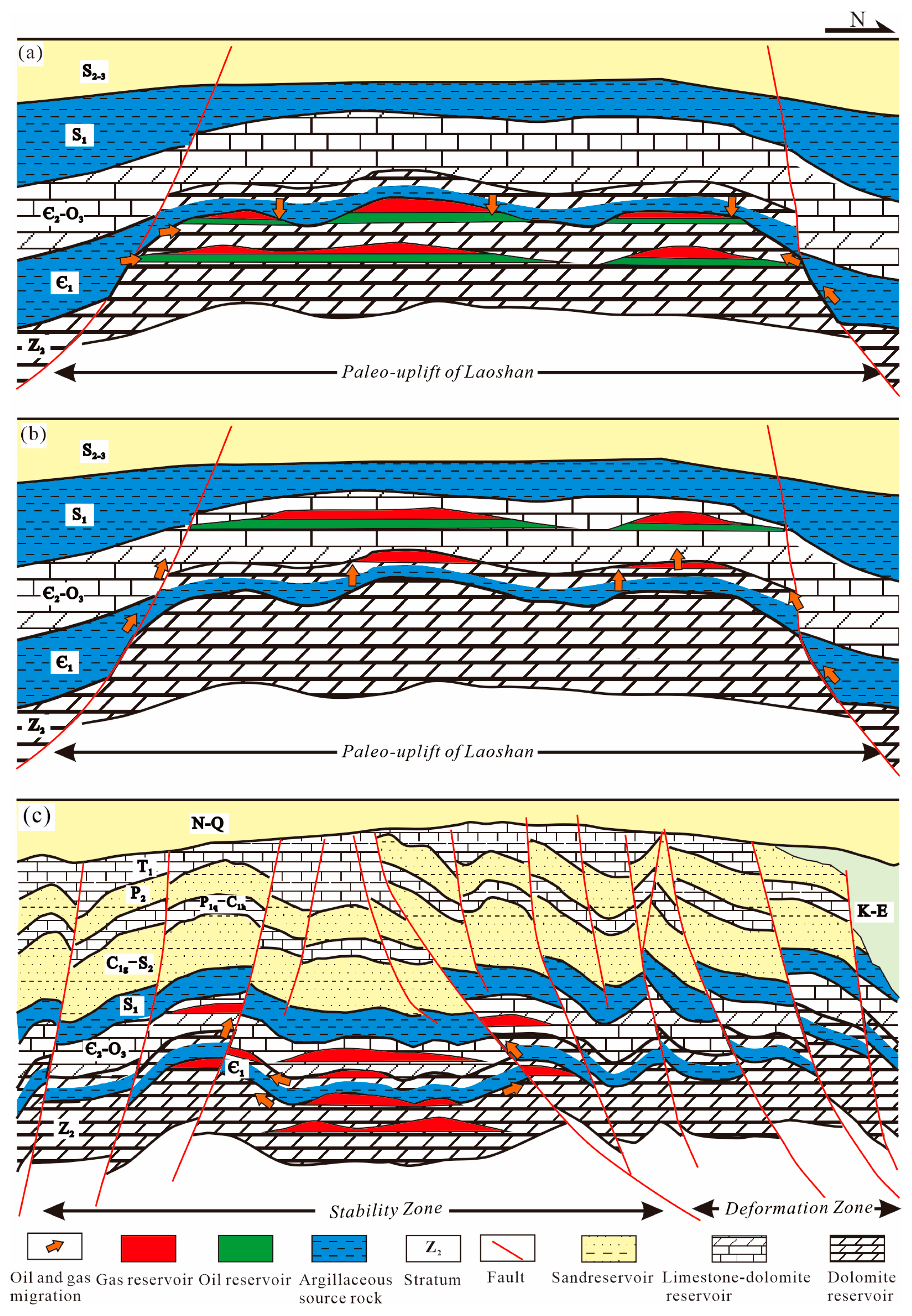 5.2.2. Paleo-Uplift Control on Reservoir Development and Hydrocarbon Accumulation