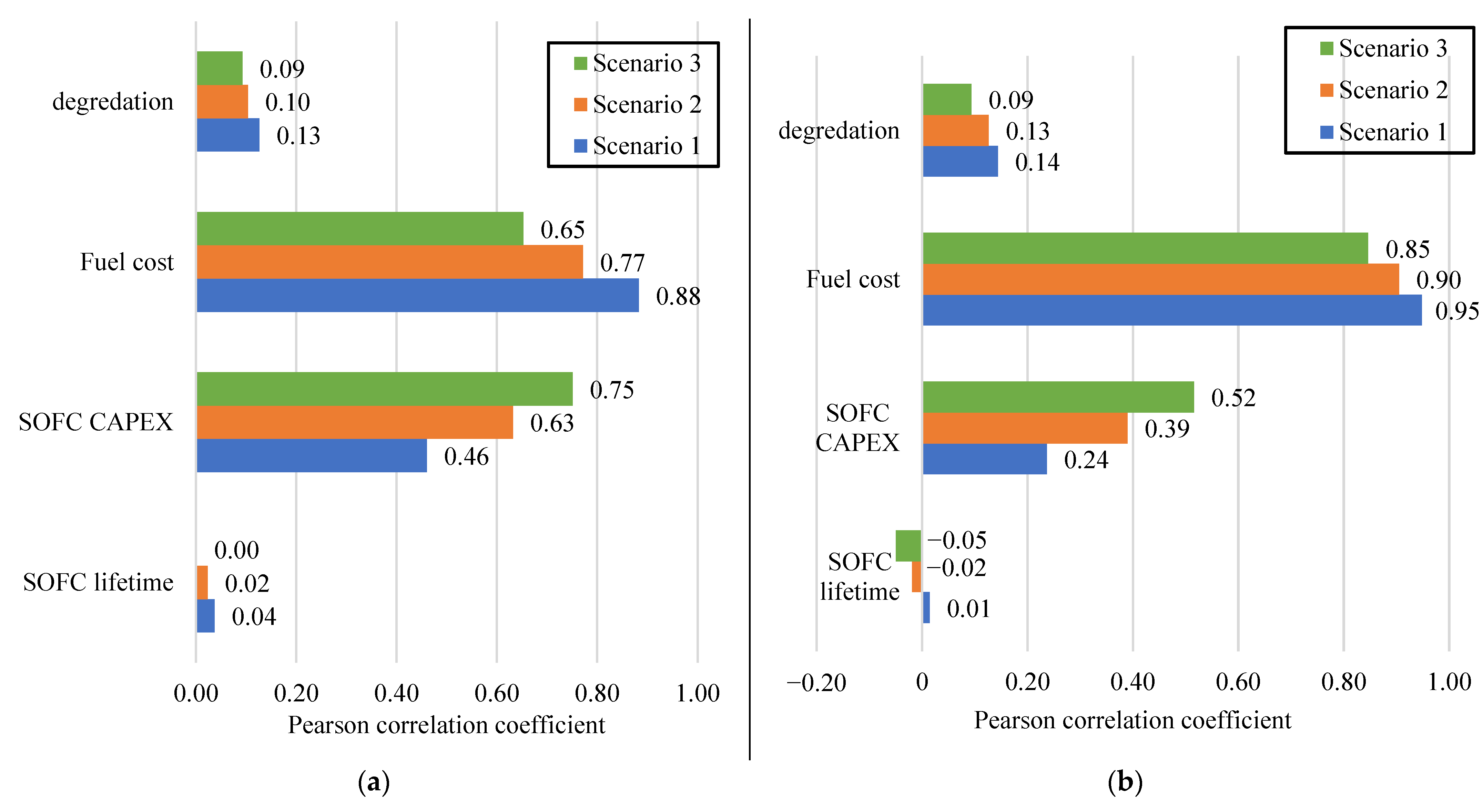- The uncertainty analysis revealed a fundamental shift in economic drivers: while fuel price dominates in low-SOFC scenarios, SOFC capital cost becomes the primary sensitivity factor in high-integration cases (20% SOFC share). This highlights that the economic viability of future, deeper decarbonization hinges critically on reducing SOFC costs.