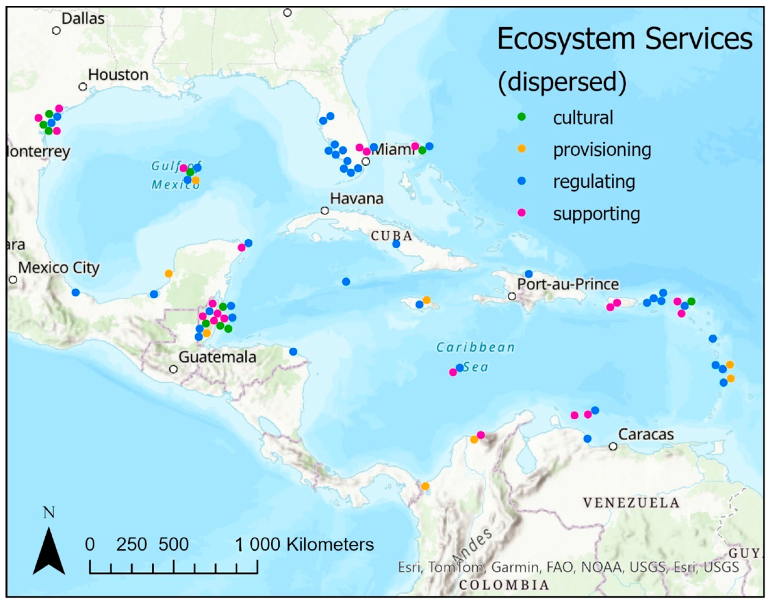 | Nurseries | Biodiversity and Fisheries | ~2013–2015 (Green) | Highlights provisioning services related to fisheries recruitment and juvenile development. |