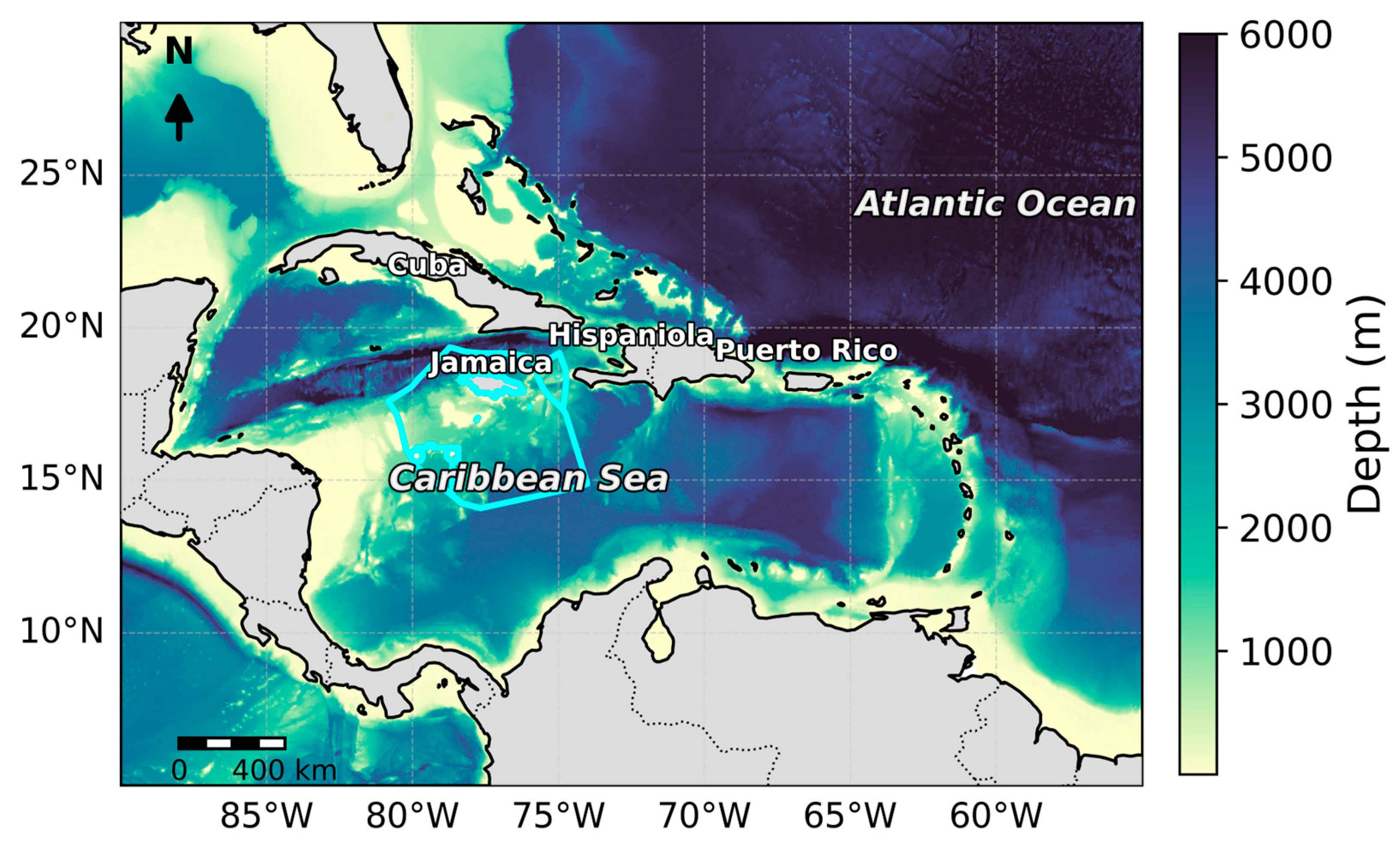 The study area encompasses Jamaica’s Exclusive Economic Zone (EEZ), located in the northwestern Caribbean Sea between approximately 17–18.5° N and 76–78° W, as shown in