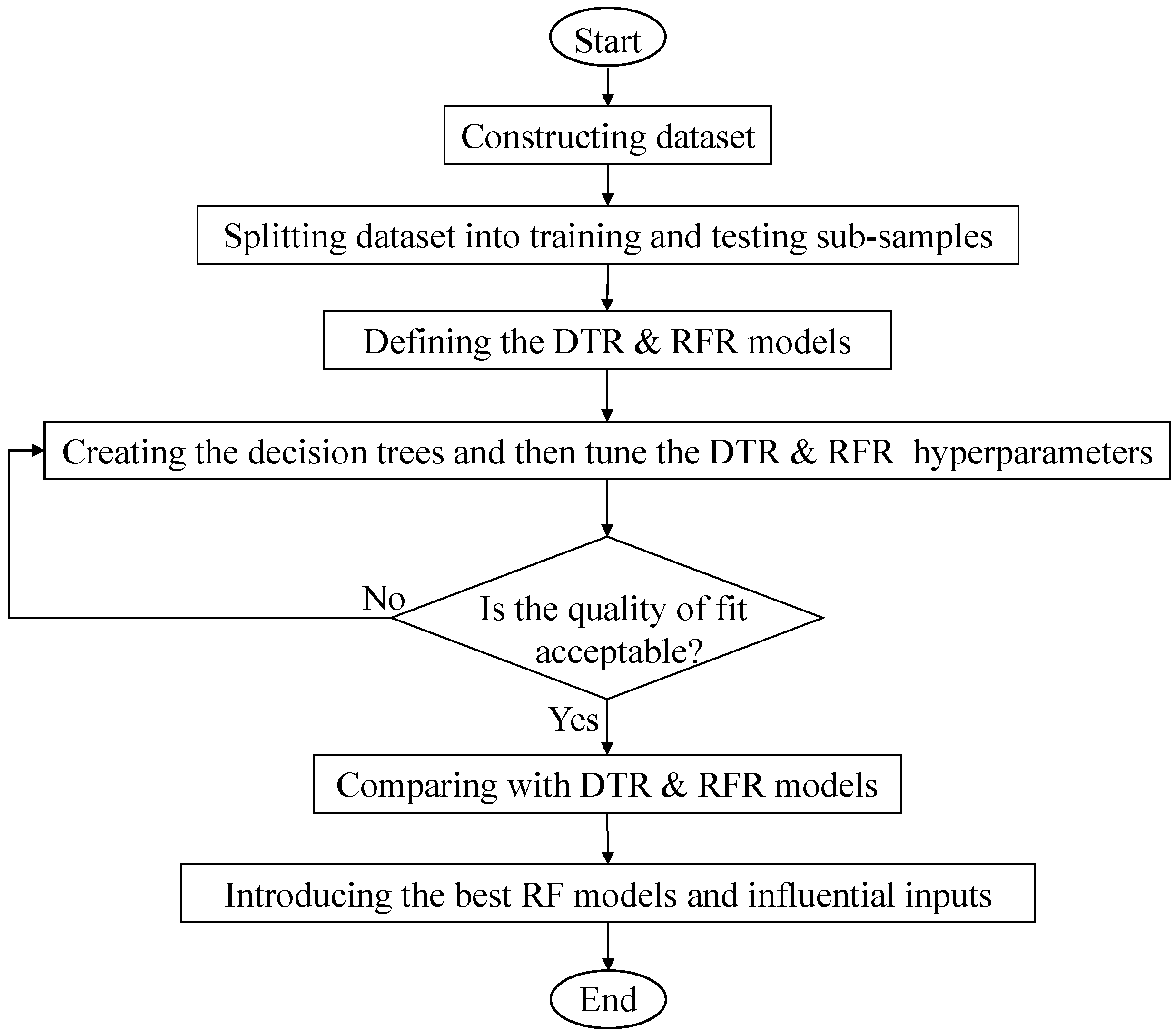 Hyperparameters were optimized using a try-and-error approach. The final hyperparameters used for the reported RFR and DTR models are as follows: