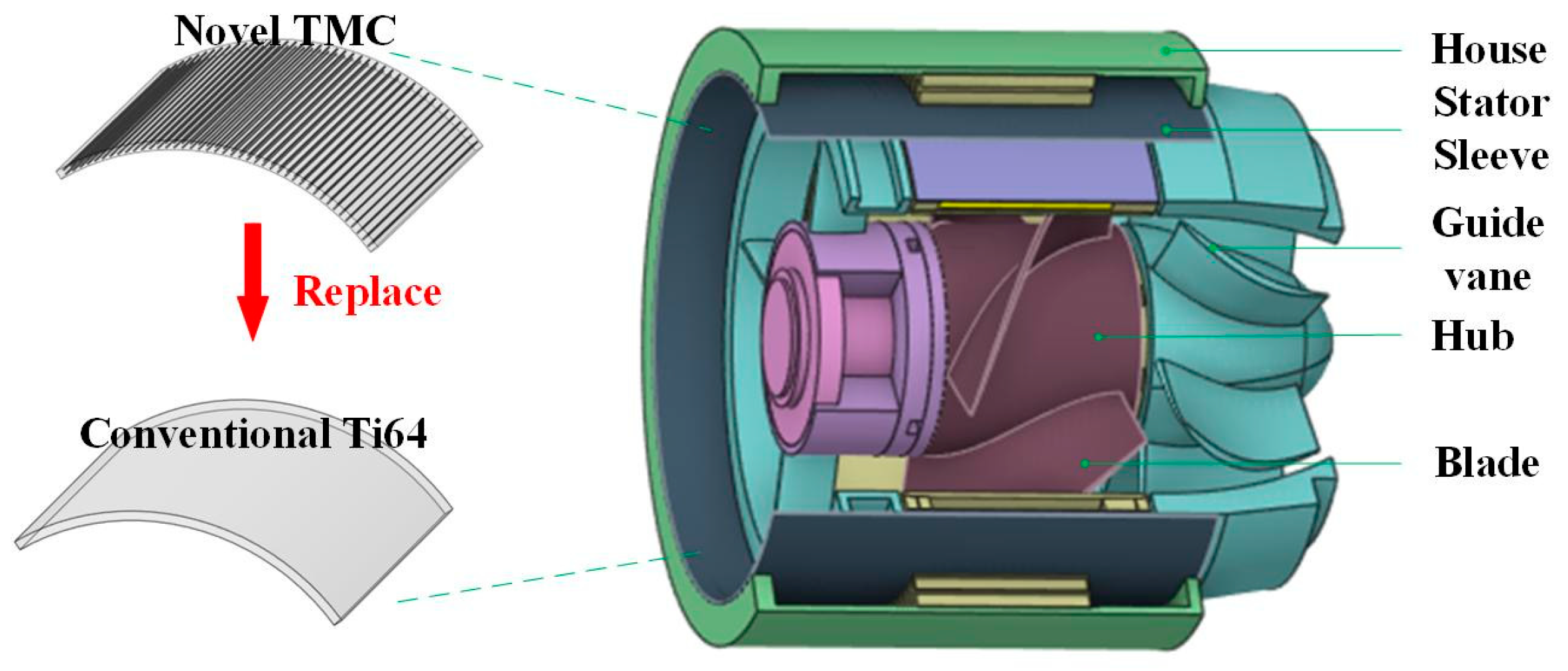 Figure 1, TMC was used for the inner sleeve of the motor stator. The strategic integration of SiC fibers creates a composite sleeve with anisotropic conductivity that effectively suppresses eddy current losses.