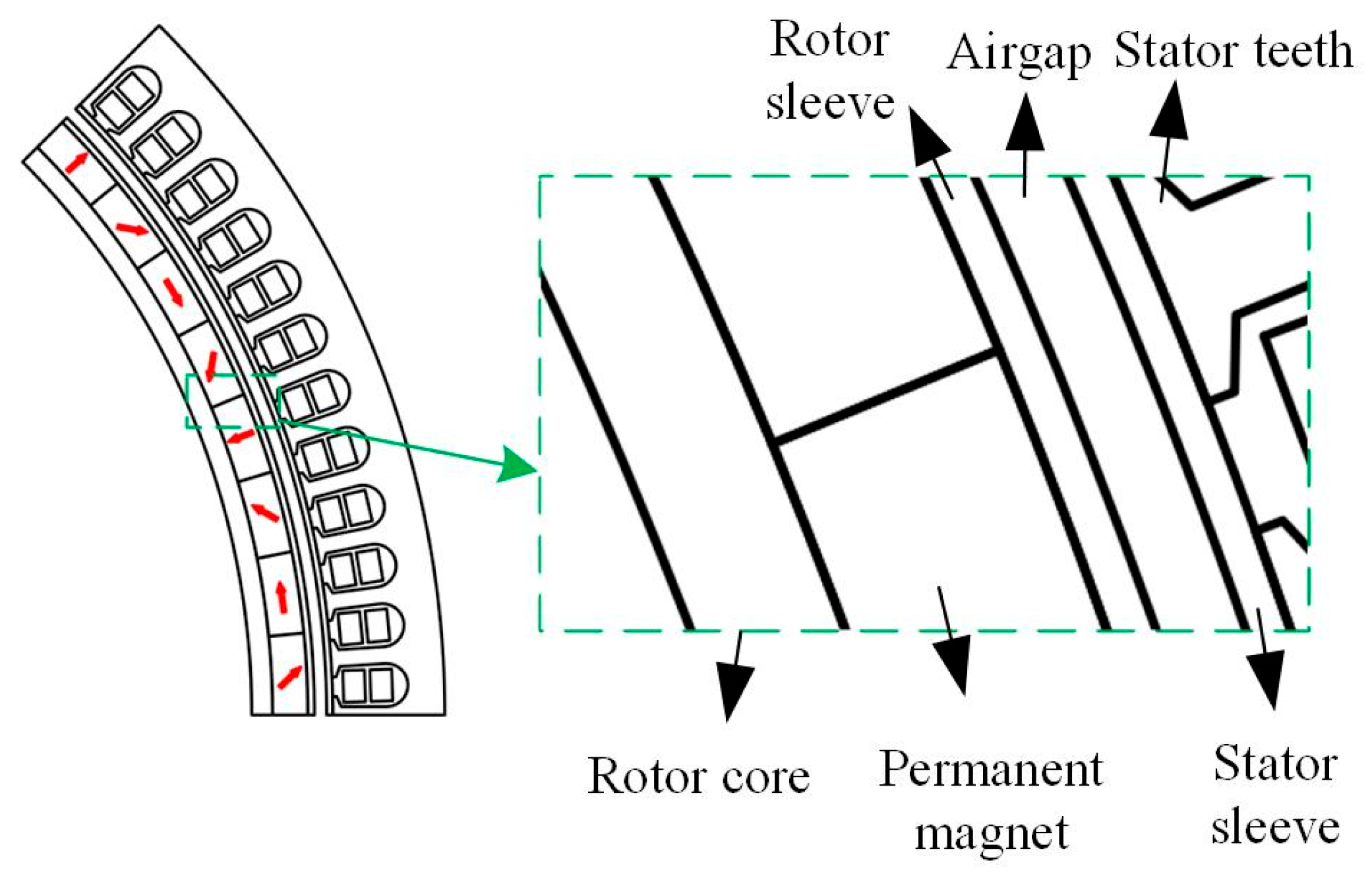 The eddy current in the stator sleeve originated from Faraday’s law of induction. The time-varying magnetic field