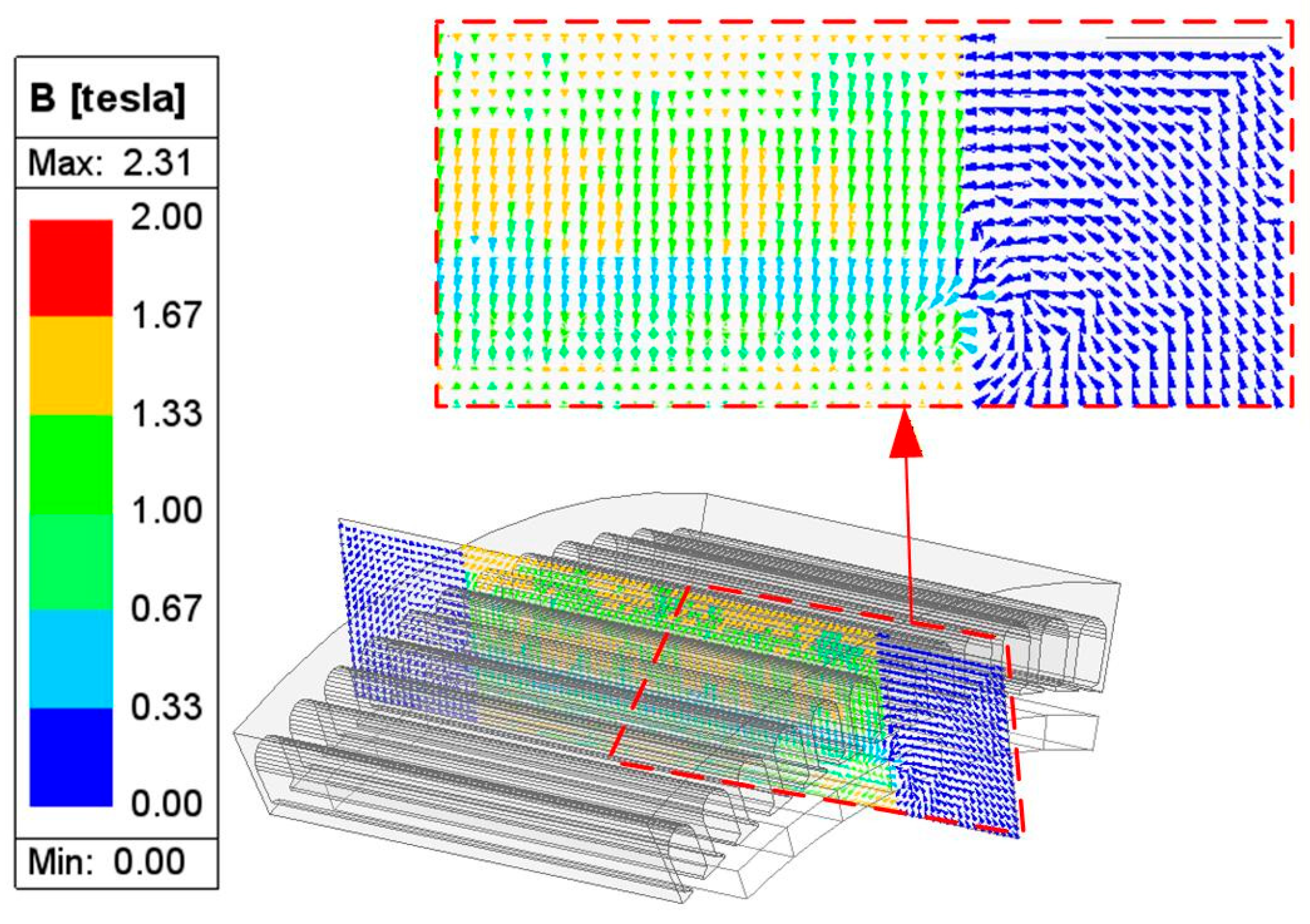 Boundary Conditions: A magnetic flux parallel condition is applied on the outer boundary.