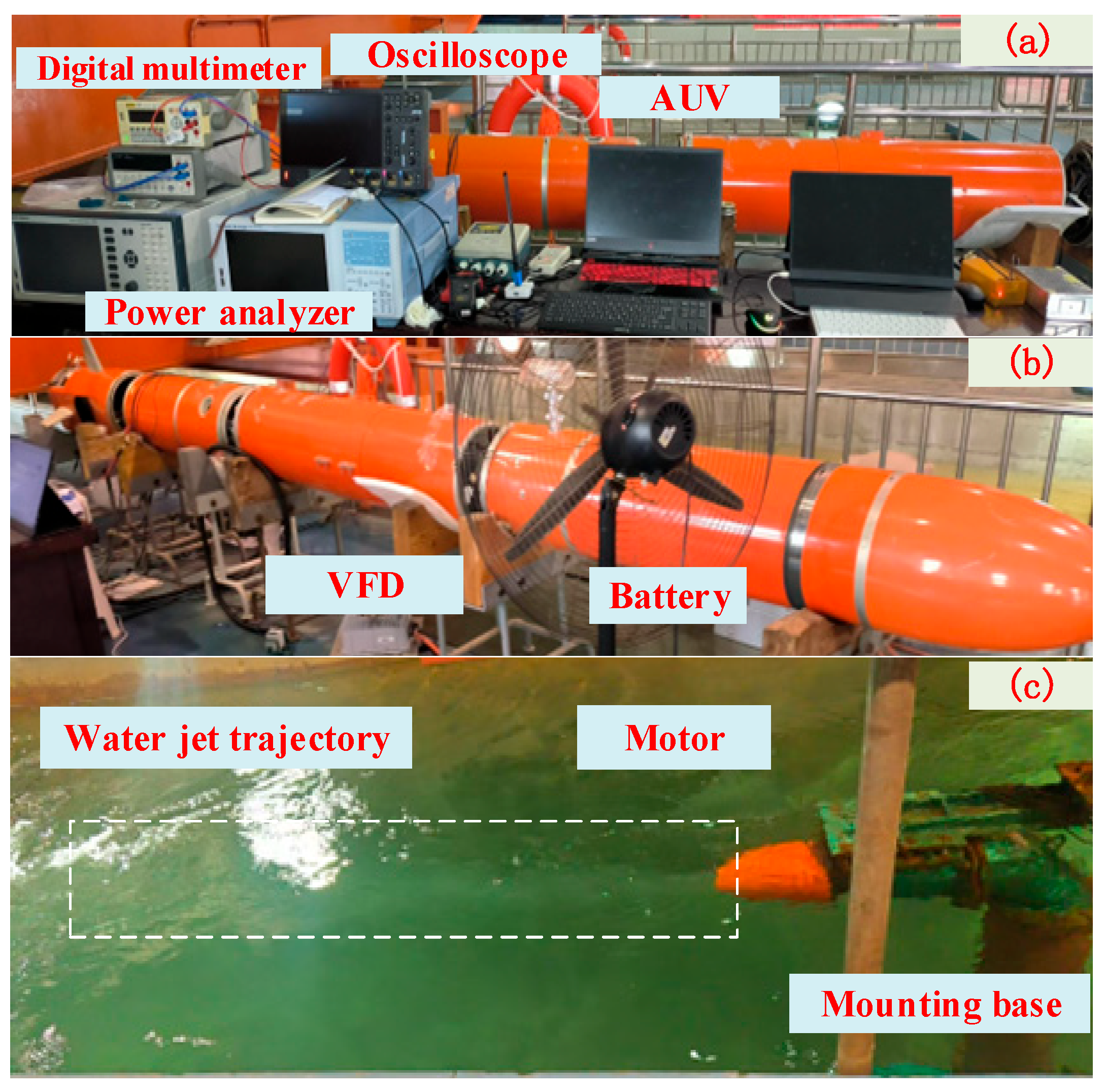 Figure 11. The shaftless motor is directly coupled to the pipeline system, with a centrifugal circulation pump installed upstream. The pump speed was precisely regulated to maintain a constant volumetric flow rate to the propeller, ensuring stable hydrodynamic performance under various operating conditions.