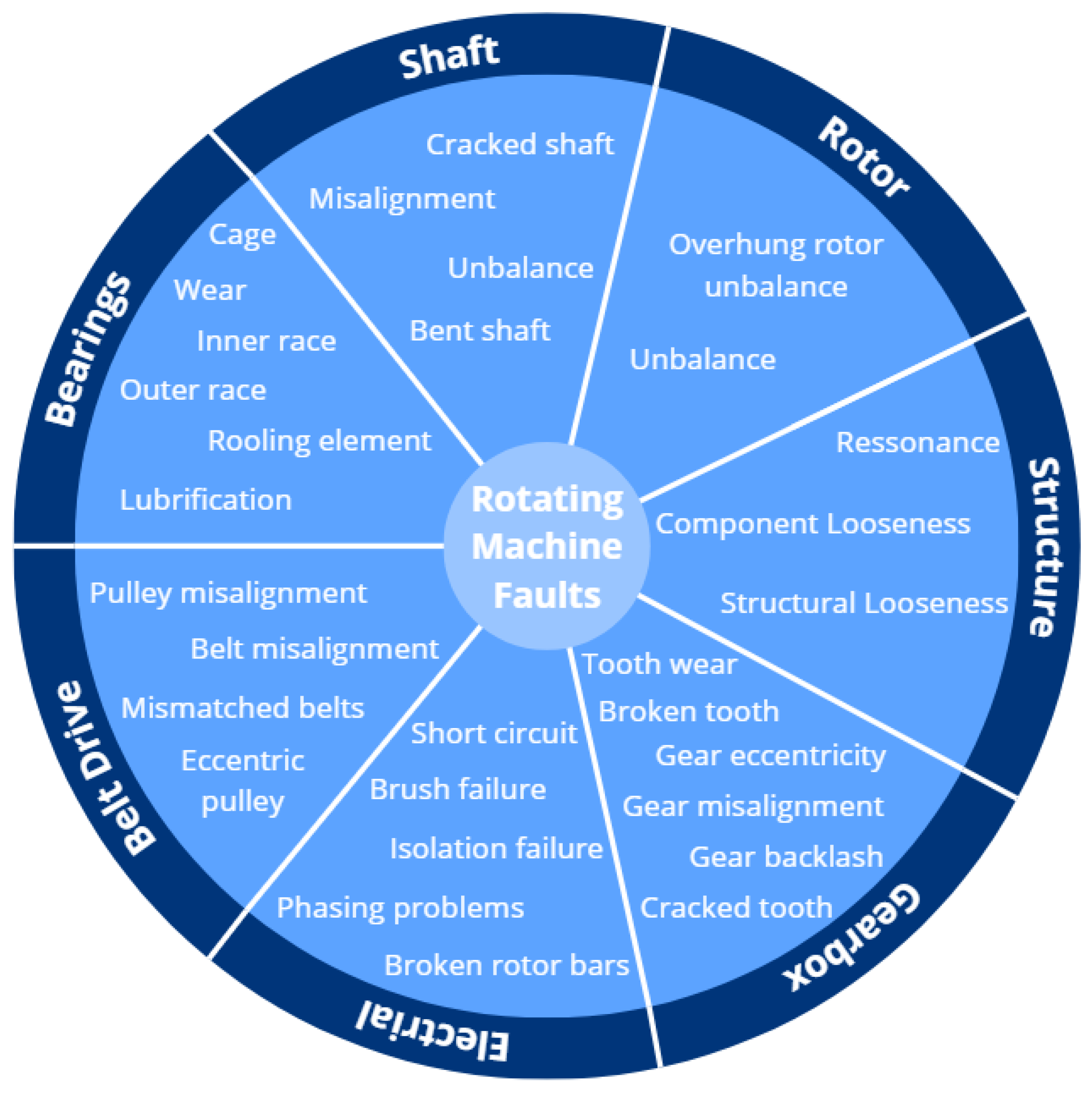 - Arun, F.G.; Alamanda, S.; Babu, S.B.G.T.; Kavita, K.; Pesaru, P.R.; Natrayan, L. Machine Learning-Based Fault Diagnosis for Rotating Machinery in Industrial Settings. In 9th International Conference on Science Technology Engineering and Mathematics (ICONSTEM); Institute of Electrical and Electronics Engineers Inc.: New York, NY, USA, 2024. [Google Scholar]