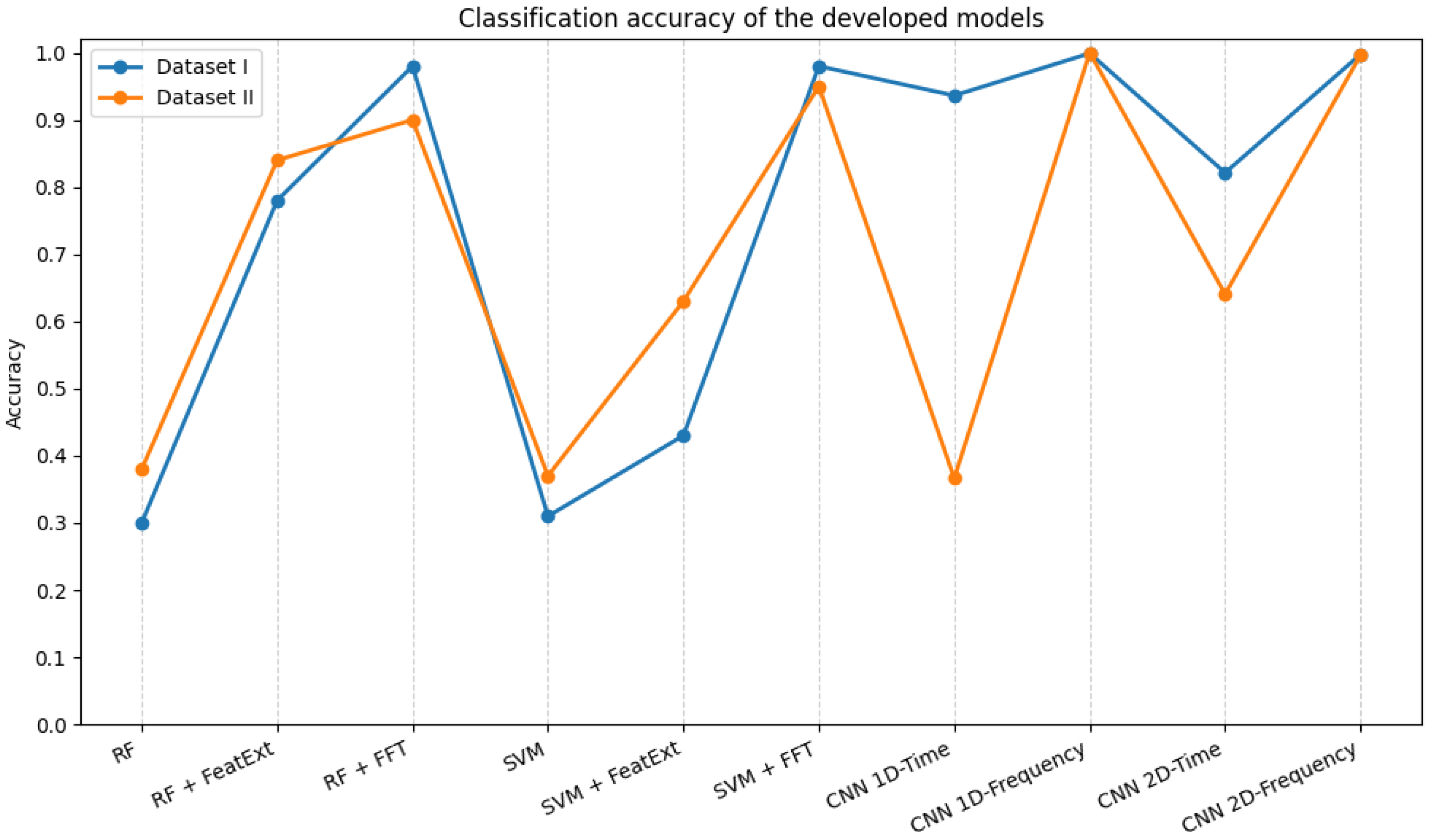 | CNN 2D—Frequency | 0.99 | 1 | 1 | 0.99 | 1 | 1 |